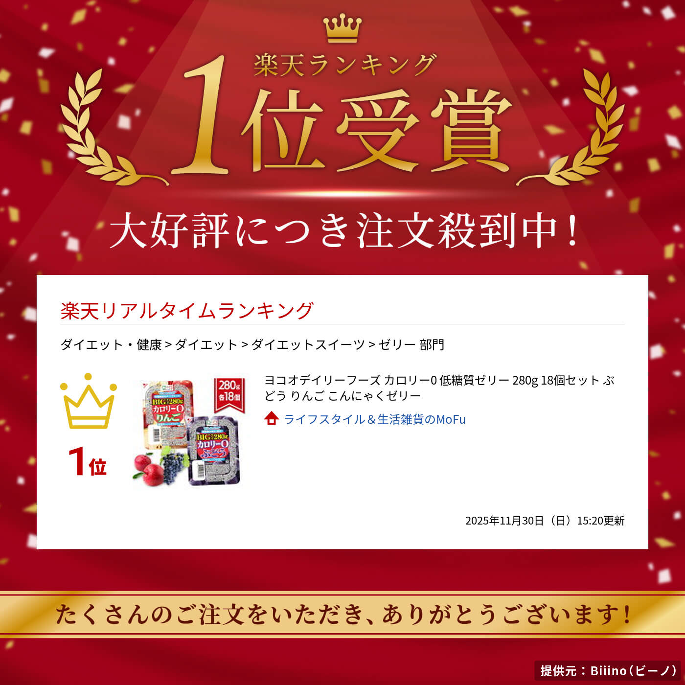 ヨコオデイリーフーズ カロリー0 低糖質ゼリー 280g 18個セット ぶどう りんご こんにゃくゼリー