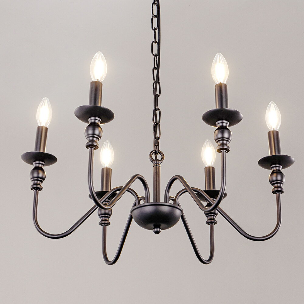 【50%OFFクーポン配布中】シャンデリア おしゃれ ブラック 6灯 LED対応 E12 ペンダントライト レトロ シーリングライト インテリア 天井照明 照明器具 リモコン無し プレゼント リビング ダイニング 電球別売り あす楽 送料無料