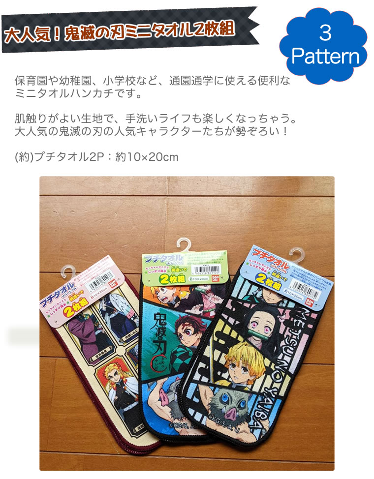 \楽天ランキング1位獲得 /ポケットタオル 2枚組 鬼滅の刃 柱 丹次郎 入園 入学 保育園 幼稚園 小学校 女の子用 男の子用 ハンカチ ハンドタオル ミニタオル 炭治郎 禰豆子 善逸 伊之助 義勇 柱 ポケットハンカチ バンダイ BANDAI プチタオル 男の子 女の子 きめつ キメツ