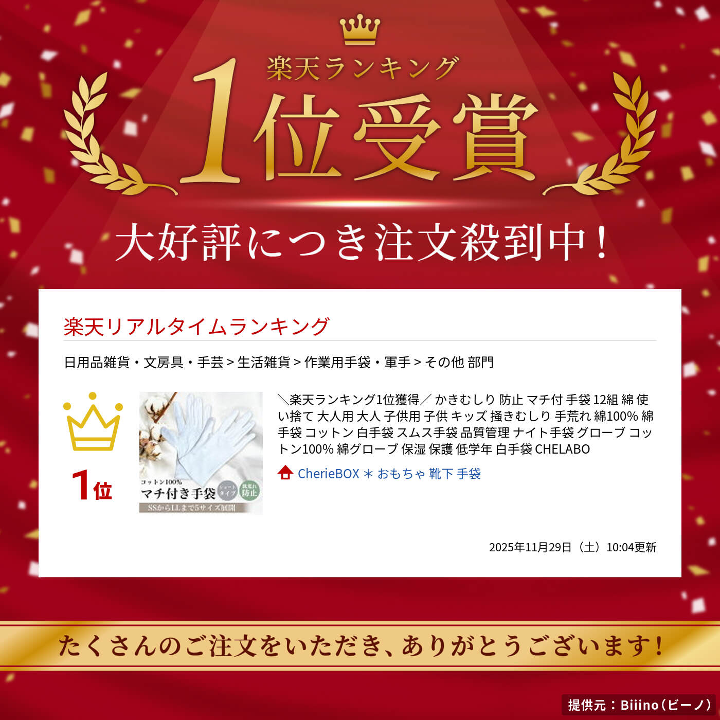 \楽天ランキング1位獲得/ かきむしり 防止 マチ付 手袋 12組 綿 使い捨て 大人用 大人 子供用 子供 キッズ 掻きむしり 手荒れ 綿100% 綿手袋 コットン 白手袋 スムス手袋 品質管理 ナイト手袋 グローブ コットン100% 綿グローブ 保湿 保護 低学年 白手袋 CHELABO