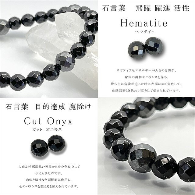 ギフト対応 ヘマタイトオニキス 珠サイズ:ヘマタイト64面カット:約10mm(磁気有り)珠サイズ:オニキス64面カット:約8mm 手首サイズ選択可 選択サイズ:約14cm・15cm・16.5cm・17.5cm・20cm・22cm・その他サイズ25cm以上のサイズは別途料金が必要になりますので、ご注文前に質問から連絡をお願いいたします。 石言葉ヘマタイト 磁気の効果で身に着ける人の血液を良くしパワーを与えてくれると言われています。 健康に毎日を過ごしたい方にもオススメです。 そしてヘマタイトのもう一つの大きなエネルギー的特性として、 持つ人の意思の力を強め、勝負強さを発揮する助けとなることがあげられます。 過酷な運命やトレーニングに負けない精神的強さを養う石でもあり、 経営者やスポーツ選手などにオススメの石と伝えられています。 石言葉オニキス 『魔除けの石』と称されるオニキスは、 古来から護符やお守りとして大切にされてきた天然石です。 邪気を祓う力が強く、悪感情を吸い取るといわれていて 他者からの悪意や嫉みや、自分の中のネガティヴな感情さえも オニキスは引き受けてくれると伝えられています。 発送について 送料無料:クリックポスト【郵便局】発送になります。 発送日から2日前後でポスト投函でのお届けとなります。 ※北海道・沖縄・離島などはさらに2日前後日数がかかる場合があります。 ベロア調ポーチに入れて簡易になりますが無料でプレゼント用ラッピングをしてお送りさせて頂きます。 備 考 画像のベロア調ポーチに入れて簡易になりますが無料でプレゼント用ラッピングをしてお送りさせて頂きます。 ◆当店取扱商品◆ ブレスレット ペアブレスレット パワーストーン 天然石 メンズ レディース 数珠 ブレス パワーストーンブレスレット パワーストーンブレス 天然石ブレスレット ゴム バングル アジャスター付き アクセサリー ギフト プレゼント 贈り物 冠婚葬祭 結婚式 パーティー フォーマル カジュアル ビジネス ドレスアップ 天然石ブレス メンズブレス 男性 女性 男性用 女性用 男女兼用 ユニセックス 腕輪 デザインブレスレット デザインブレス かわいい 可愛い かっこいい おしゃれ シンプル デザイン 誕生石 高級石 送料無料 人気重ね付け 入園式 入学式 卒園式 卒業式 恋愛 恋愛運 結婚運 出会い 金運 仕事運 お守り 厄除け 魔除け 幸運 強運 幸福 開運 癒し 浄化 ストレス解消 目標達成 家庭円満 合格祈願 フェミニン ガーリー バレンタインデー ホワイトデー 無料ラッピング 父の日 母の日 厄年 厄除け メンズ ブレスレット メンズブレスレット高品質な石を使用した、スマートで洗練されたブレスレット 男性も女性も愛用可能な商品なので、 ペアブレスレットとしてもご愛用頂けます。 2本セットでご注文はココから↓ ◆取扱商品 様々なシーンや用途 イベント お祝いや行事に◆ ブレスレット ペアブレスレット パワーストーン 天然石 メンズ レディース 数珠 ブレス パワーストーンブレスレット パワーストーンブレス 天然石ブレスレット ゴム バングル アジャスター付き アクセサリー ギフト プレゼント 贈り物 冠婚葬祭 結婚式 パーティー フォーマル カジュアル ビジネス ドレスアップ 天然石ブレス メンズブレス 男性 女性 男性用 女性用 男女兼用 ユニセックス 腕輪 デザインブレス かわいい 可愛い かっこいい おしゃれ シンプル デザイン 誕生石 高級石 送料無料 人気重ね付け 入園式 入学式 卒園式 卒業式 恋愛 恋愛運 結婚運 出会い 金運 仕事運 お守り 厄除け 魔除け 幸運 強運 幸福 開運 癒し 浄化 ストレス解消 目標達成 家庭円満 合格祈願 フェミニン ガーリー バレンタインデー ホワイトデー 父の日 母の日 厄年 厄除け メンズブレスレット 退院祝い 全快祝い 快気祝い 二次会 披露宴御祝 結婚式 結婚祝い 出産祝い 誕生日プレゼント 誕生日祝い ギフト 婚約 結婚記念日 引越し祝い 結婚祝い お祝い 祝い 新築祝い 新築内祝い 引越し祝い 開店祝い 開業祝い プレゼント 誕生日 入学 卒業 成人 就職 受検 入試 就活 卒業記念品 転職 婚活 妊活 商売繁盛 起業 父の日 母の日 敬老の日 還暦 長寿 古希 喜寿 米寿 卒寿 白寿 百寿 大還暦 還暦祝い お返し 御返し お祝い返し 返礼品 御礼 お礼 洗練されたワンランク上の天然石ブレスレット結婚式 記念日 定年退職記念品 ゴルフコンペ コンペ景品 景品 賞品 粗品 帰省土産 お花見 ひな祭り こどもの日 プレゼント 女子会 パーティ ビジネス 法人ギフト 金婚式 銀婚式 花婚式 ホームパーティ イベント ハロウィン ハロウィーン ハロウィンパーティー ハロウィンナイト クリスマス クリスマスプレゼント クリスマス会 御祝 快気祝い 退職 贈り物 喜ばれる お礼 おくりもの ウェディングギフトブライダルギフト 記念品 お土産 ギフト 忘年会 新年会 二次会 送別会 転勤 定年退職 お父さん お母さん 兄弟 お兄ちゃん 弟 姉妹 お姉ちゃん 妹 子供 子ども こども 祖母 おばあちゃん 祖父 おじいちゃん 奥さん 嫁 彼女 旦那さん 姑 彼氏 友達 友人 ご近