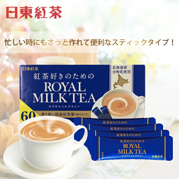 ミルクティー 粉末 60本 紅茶 粉末 スティックタイプ ホット アイス 粉末紅茶 日東紅茶 紅茶好きのためのロイヤルミルクティー 60本入り 個包装 粉タイプ 大容量 インスタント ROYAL MILK TEA 家用 会社用 職場用 スティック ミルクティー 常備ドリンク お湯で簡単 来客用