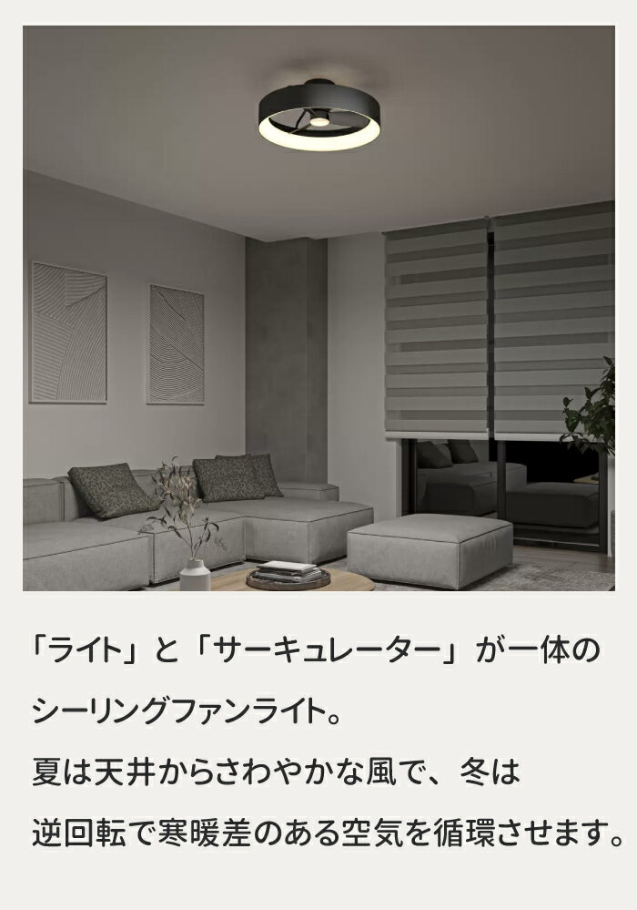 キャンプ用品 はコチラ! インテリア雑貨は こちらから★ ガーデニング用品は こちら! 商品名 シーリングファンライト サイズ 直径約58.4 × 高さ約21.6cm 重量 約3.4kg 電源 AC100V 50/60Hz 消費電力 70w ファン 回転数:640r/min、風速:4.7m/sec、風量:50立方メートル/min 照明 明るさ:2000lm、調色:8段階、調光:10~100% 機能 風量調整:3段階、切タイマー:1時間/4時間 コメント ・「ライト」と「サーキュレーター」が一体のシーリングファンライト ・夏は天井からさわやかな風で、冬は逆回転で寒暖差のある空気を循環させます ・ファンが足元にないので、小さなお子さまやペットがいるご家庭でも安心 ・直径58.4cmのコンパクトサイズ ・高級感を感じさせるマットブラックでシックなデザイン ・静音モーター搭載で動作音も気になりません ・付属のリモコンを使って手元で風量やライトをスムーズに調整【ARTIKA AUSTIN シーリングファンライト】 LED照明とファンを一体化した、スタイリッシュなシーリングファンライトです。 ■ 照明+ファンの一体型 1台で明るさと空気循環を同時に実現します。 ■ 空気循環で快適 冷暖房の効率を高め、季節を問わず快適な室内環境を保ちます。 ■ モダンデザイン シンプルで洗練されたデザインが、インテリアに自然になじみます。 ■ 幅広い設置場所に リビング・ダイニング・寝室などにおすすめです。 【関連ワード】 ARTIKA アーティカ AUSTIN シーリングファンライト シーリングファン ファン付き照明 LED照明 天井照明 照明器具 空気循環 省エネ 冷暖房効率 リビング照明 寝室照明 ダイニング照明 おしゃれ照明 モダン照明 北欧インテリア スタイリッシュ 天井ファン ファンライト 照明ファン インテリア照明 家電 住宅設備 快適空間 節電対策 夏対策 冬対策 オールシーズン 人気照明 楽天人気 省スペース 天井すっきり 照明一体型 空調サポート 室内用 家庭用 リフォーム 新生活 シーリングファンライト LED ファン付き 照明 天井 ファンライト 空気循環 照明 おしゃれ シーリングファン 夏も冬も使える照明が欲しい 冷暖房の効率を上げたい 天井をすっきりさせたい おしゃれなファン付き照明を探している リビング用のシーリングファンライト ARTIKA AUSTIN シーリングファンライト LED 照明 ファン付き 天井照明 空気循環 省エネ リビング 寝室 おしゃれ【ARTIKA AUSTIN シーリングファンライト LED ファン付き照明】 ARTIKA AUSTIN(アーティカ オースティン)は、 LED照明とシーリングファンを一体化したスタイリッシュなシーリングファンライトです。 照明として部屋を明るく照らしながら、 ファンで空気を循環させることで、 冷暖房効率を高め、1年を通して快適な空間を実現します。 ◆ LED照明+ファンの一体型 1台で「照明」と「空気循環」を同時にカバー。 リビング・ダイニング・寝室など、 天井をすっきり見せたい空間に最適です。 ◆ 空気を循環して快適 ファンが室内の空気を循環させ、 夏は涼しく 冬は暖房の効率アップ 冷暖房のムラを抑え、省エネにも貢献します。 ◆ モダンで洗練されたデザイン シンプルかつスタイリッシュなデザインで、 北欧・モダン・インダストリアルなど、 さまざまなインテリアに調和します。 ◆ こんな方におすすめ ・シーリングファンライトを探している ・空調効率を良くしたい ・おしゃれな天井照明が欲しい ・リビングや寝室に使いたい 【関連ワード】 ARTIKA アーティカ AUSTIN シーリングファンライト シーリングファン ファン付き照明 LED照明 天井照明 照明器具 空気循環 省エネ 冷暖房効率 リビング照明 寝室照明 ダイニング照明 おしゃれ照明 モダン照明 北欧インテリア スタイリッシュ 天井ファン ファンライト 照明ファン インテリア照明 家電 住宅設備 快適空間 節電対策 夏対策 冬対策 オールシーズン 人気照明 楽天人気 省スペース 天井すっきり 照明一体型 空調サポート 室内用 家庭用 リフォーム 新生活 シーリングファンライト LED ファン付き 照明 天井 ファンライト 空気循環 照明 おしゃれ シーリングファン 夏も冬も使える照明が欲しい 冷暖房の効率を上げたい 天井をすっきりさせたい おしゃれなファン付き照明を探している リビング用のシーリングファンライト ARTIKA AUSTIN シーリングファンライト LED 照明 ファン付き 天井照明 空気循環 省エネ リビング 寝室 おしゃれ