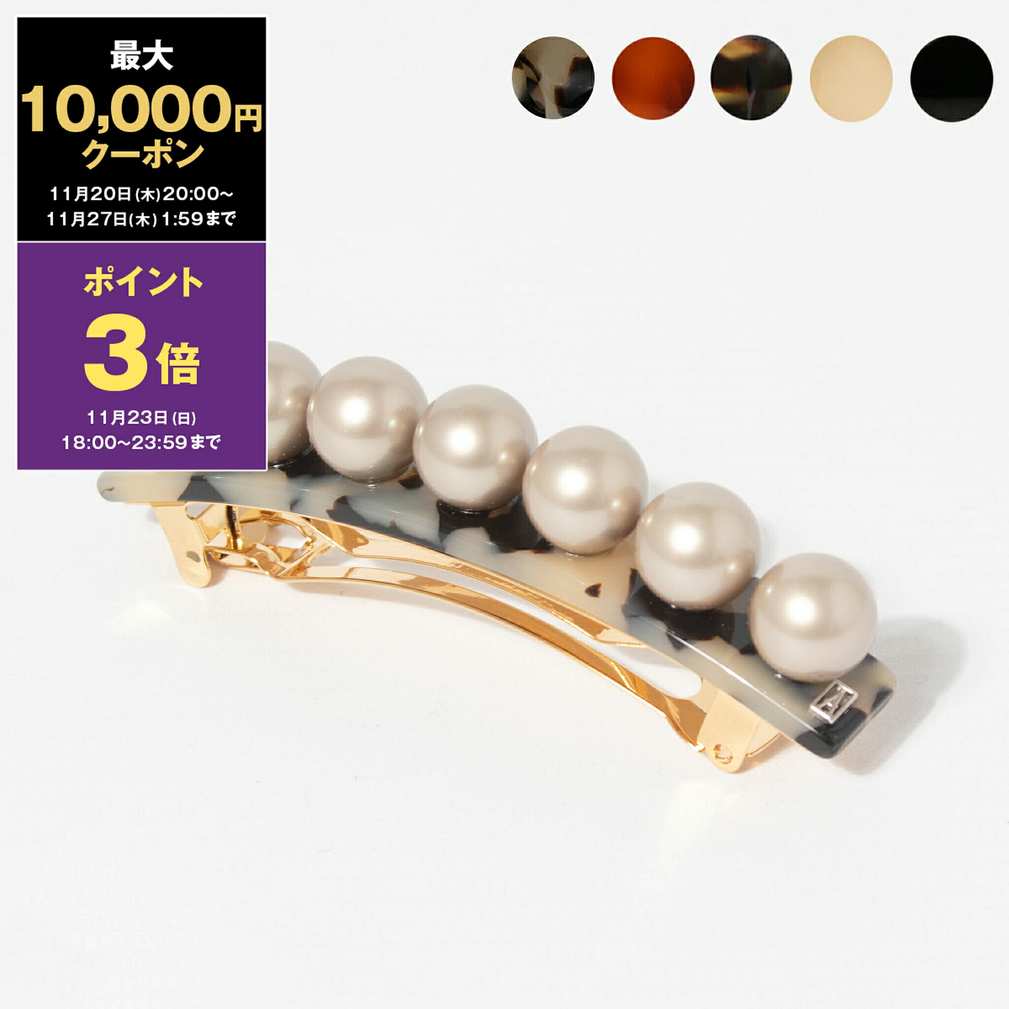 ブランドALEXANDRE DE PARISはこちら「女性の美を芸術の域にまで到達させた」と評さる高級ヘアアクセサリーメーカー。モナコのグレース王妃、オードリー・ヘップバーンをはじめ世界の王侯貴族やトップレディーたちが顧客に名を連ねています。高完成までに4人がチェックする程ひとつひとつ丁寧に手作りされたバレッタやカチューシャは、フレキシブルな使い心地です。スタイルバレッタ商品説明【LES PERLES OVERSIZE BARRETTE】大粒のパールが目を引くバレッタ。ブランドロゴがアクセントになった、上品で清潔感のあるアイテムです。年齢を問わずお使いいただくことができ、アレンジ次第で幅広い場面で活躍する一品です。カラー[全5色]ALBINOS(G) - アルビノス、ロゴ:シルバーBEIGE(S) - ベージュ、ロゴ:ゴールドECAILLE(E)- エカイユ、ロゴ:ゴールドNOIR(N2) - ブラック、ロゴ:シルバーTOKYO(W)- トーキョー、ロゴ:ゴールドメタル部分:ゴールド素材ACETATE(アセテート)、SWAROVSKI CRYSTAL PEARLS(スワロフスキー クリスタル パール)サイズ(約)H1×W8×D2cm> サイズガイドはこちら重量(約)28g付属品ALEXANDRE DE PARIS オリジナル保存袋製造国フランス ※入荷時期により、仕様が異なる場合がございます。予めご了承ください。※ディスプレイ環境の違いにより、多少色味が写真と異なる場合がありますのでご了承ください。※サイズの若干の誤差はご了承ください。※稀に商品の保存箱・袋に破損(折れ、へこみ、破れ、汚れ等)などが見られる場合がございますが、初期不良対象外とさせて頂きます。コチラを理由とした返品交換・キャンセル等はお受けしておりませんので、予めご了承ください。 ※保存袋のデザイン・サイズはシーズンによって異なります。サイズについては商品に見合わない場合がございます事、予めご了承ください。※ハンドメイドについて本製品はハンドメイドで作られているため個体差や、黒い点、塗りむら、細かなスレ傷、スワロフスキーの数、位置などが若干異なる場合などございます。ブランド検品後問題ないと判断した商品を販売しておりますので、上記の理由による返品は対象外となります。