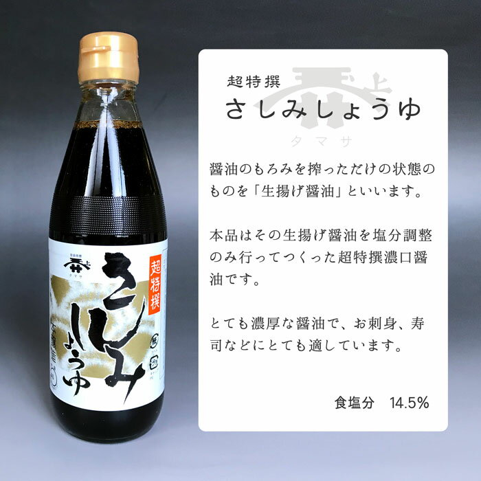 超特撰 さしみしょうゆ 醤油 調味料 国産 無添加 天然醸造 宮醤油 タマサ醤油 しょうゆ 濃口 さしみ ギフト 自宅用 かけ醤油 万能 特撰 特級