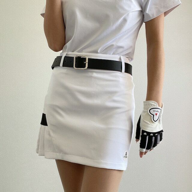 ≪細身≫pAハーフプリーツタイトスカート C240405-02 韓国ゴルフウェア 小さいサイズ スカート 夏 モノトーン 安い プチプラ 黒 白 ストレッチ シンプル トップス ゴルフ女子 可愛い 韓国ブランド プティオール
