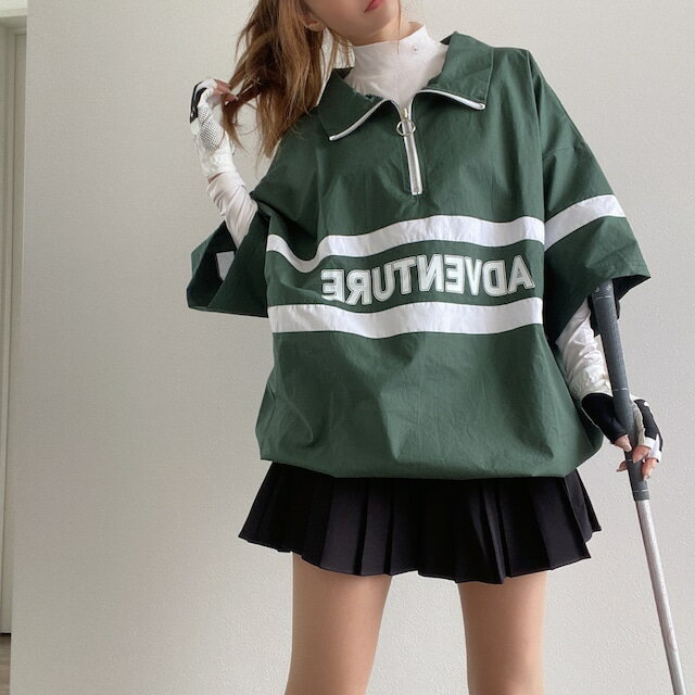 ADVETUREプルオーバー K240406-01 韓国ゴルフウェア ゴルフウェア レディース トップス カジュアル ビックシルエット 大きいサイズ オーバーサイズ 薄手 夏 ポロシャツ 安い プチプラ 緑 ベージュ 無地 シンプルトップス ゴルフ女子 可愛い お洒落 韓国ブランド プティオール