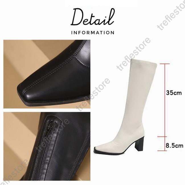 ロングブーツ レディース ブーツ ロング丈 スクエアトゥ 太めヒール サイドジッパー PU 合皮 シンプル 美脚 大人 おしゃれ 履きやすい 歩きやすい 秋冬