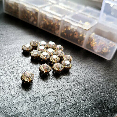 ゴールド ラインストーン 大容量 ケース付き 爪あり 縫い付けラインストーン ガラスストーン ビジュー 台座付き ダイヤカット ハンドメイド素材 穴 通し穴あり