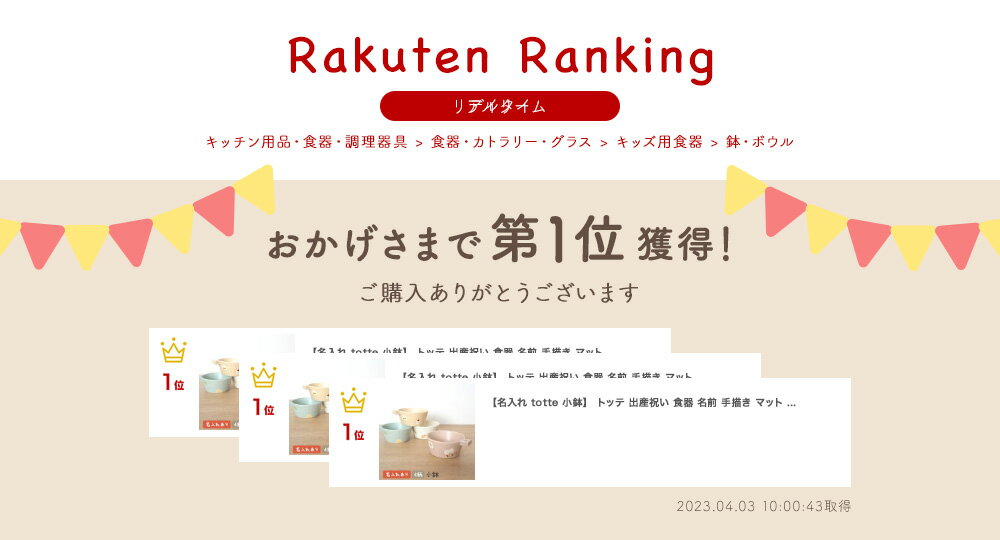 【名入れ無料 totte 小鉢】 トッテ 出産祝い 食器 名前 手描き マット おしゃれ 日本製 陶器 子ども食器 ボウル 名入れ子ども食器