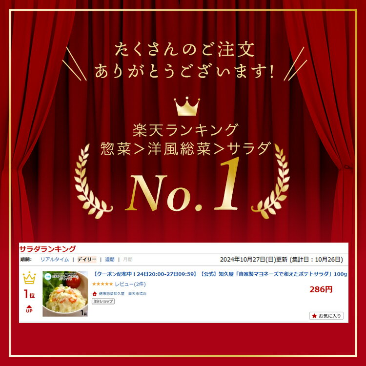 【最大500円OFFクーポン配布中】【公式】知久屋「自家製マヨネーズで和えたポテトサラダ」100g 冷蔵 | ちくや 惣菜 おかず お弁当 無添加 ギフト お歳暮 クリスマス 手作り 洋食 サラダ 一人暮らし 単身赴任 時短調理