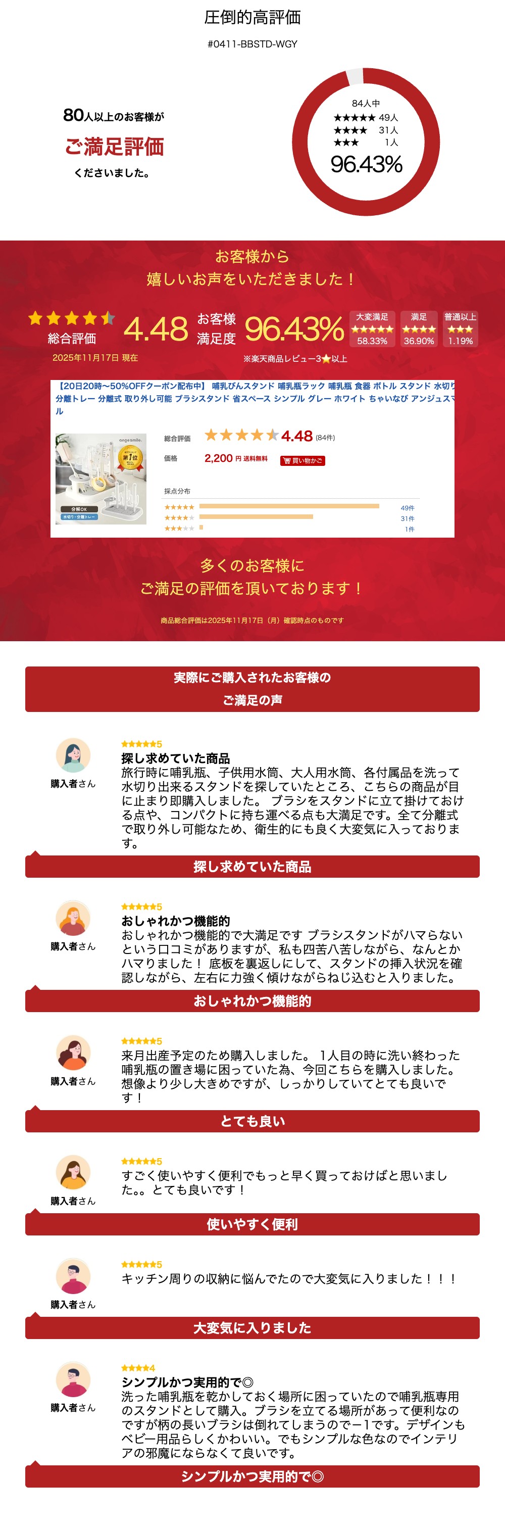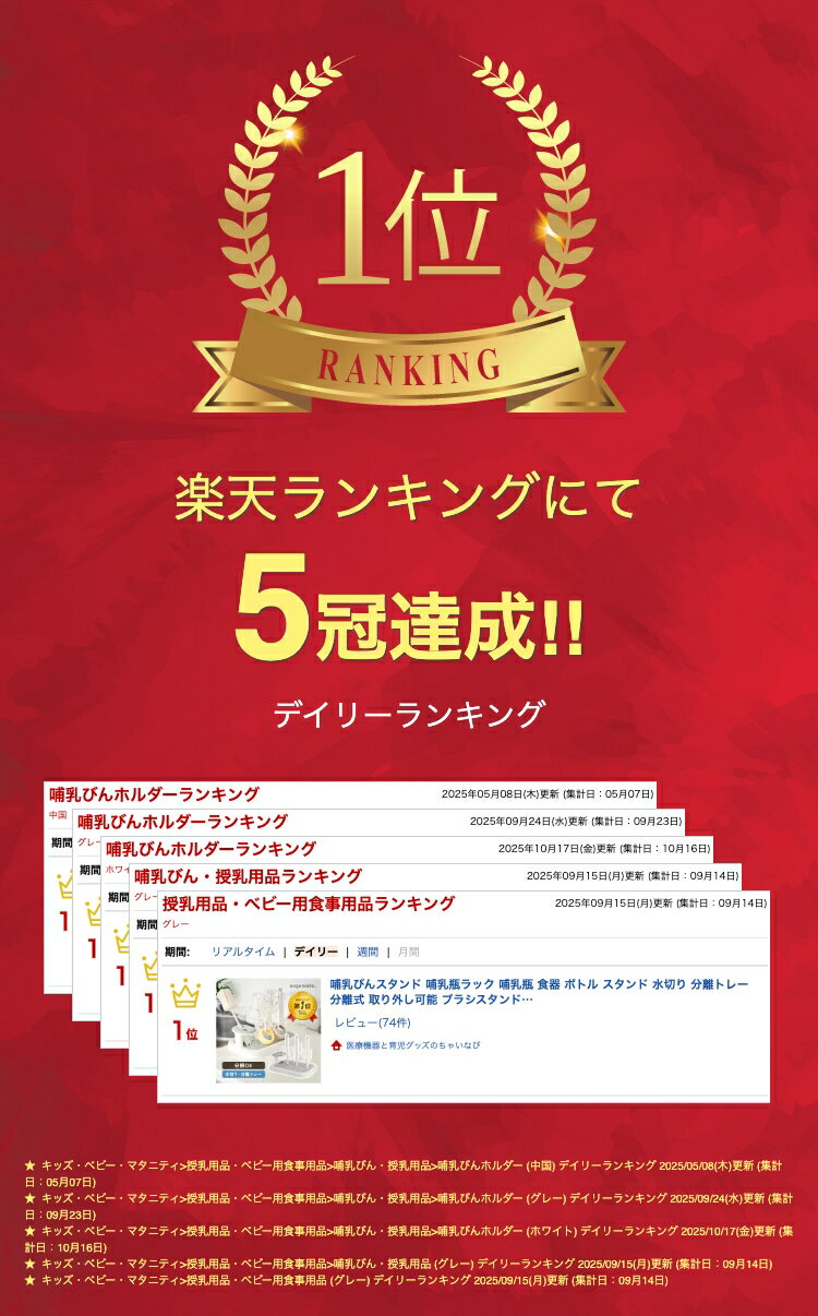 【20日20時〜50%OFFクーポン配布中】 哺乳びんスタンド 哺乳瓶ラック 哺乳瓶 食器 ボトル スタンド 水切り 分離トレー 分離式 取り外し可能 ブラシスタンド 省スペース シンプル グレー ホワイト ちゃいなび アンジュスマイル