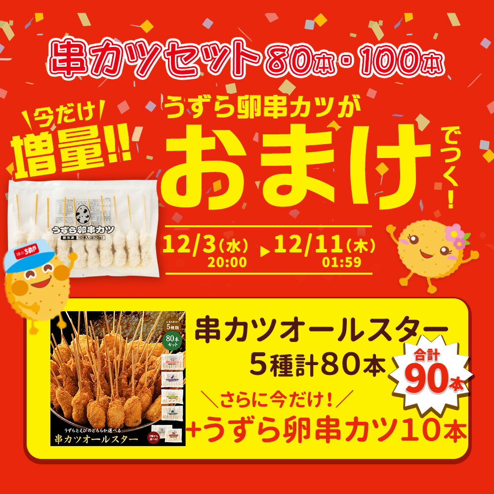 \今だけ半額!クーポン利用で50%OFF★さらにおまけ付き/ 【公式 味のちぬや】 串カツオールスター80本セット 送料無料 [ 串カツ 手軽 簡単 揚げ調理 大容量 詰め合わせ 冷凍食品 ストック おかず 惣菜 揚げ物 お弁当 中国産 ] セール 楽天スーパーSALE