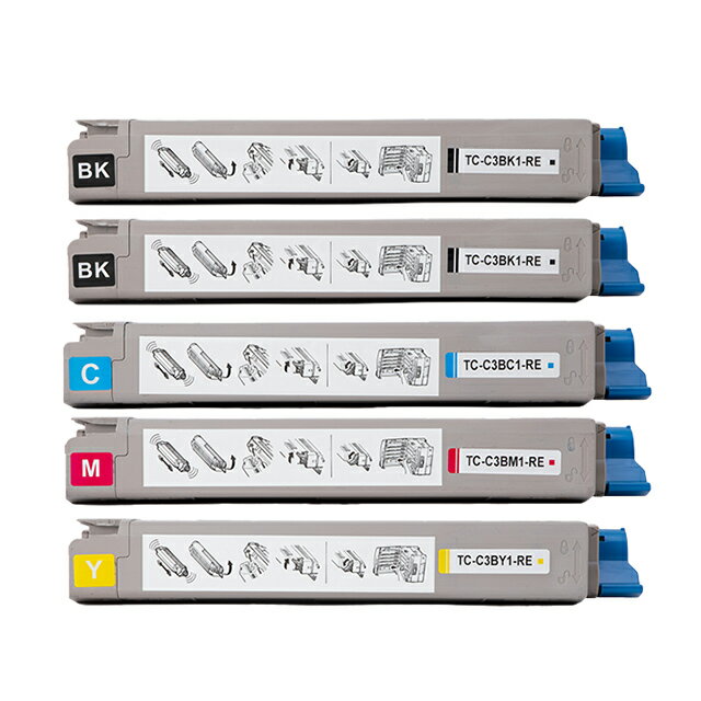 【1日はP最大24倍★10%クーポンも配布中】 【 宅配便商品 あす楽 】 沖データ用 OKI用 TC-C3B1 4色セット+ブラック1本 計5本 リサイクルトナーカートリッジ エコ 内容: TC-C3BK1 TC-C3BC1 TC-C3BM1 TC-C3BY1 機種: C824dn C844dnw C835dnw C835dnwt