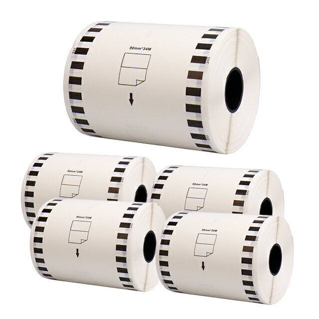 【ブラックフライデー開催★P最大24倍!】 ブラザー用 DT-245 ×5個 長尺紙テープ(感熱紙) 蛍光増白剤不使用 幅90mm × 長さ34m 白テープ 黒文字 互換ラベル DTテープ QLシリーズ用