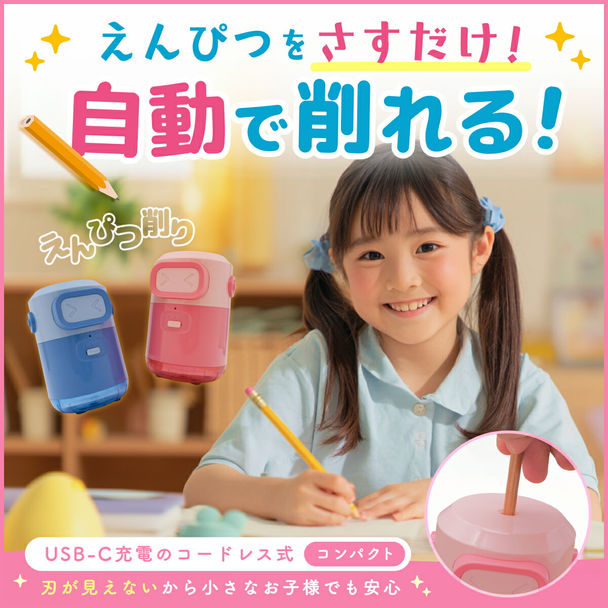 【最大50%OFF★ブラックフライデーSALE中】 鉛筆削り 電動 子供用 卒園祝い 入学祝い えんぴつ 色鉛筆 芯の太さ調節可 卓上クリーナー ギフト対応可 えんぴつ削り オフィス 充電式鉛筆削り コンパクト 日本語説明書同梱 ★レビューで特典を選べる