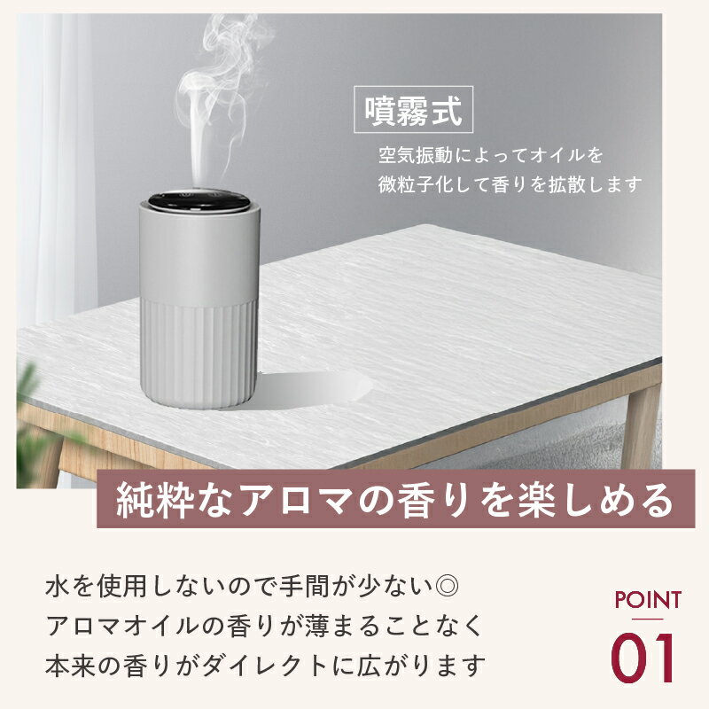 【20時まで+P5倍★最大777円クーポン配布】 アロマディフューザー 水なし コードレス 噴霧式 usb充電式 オイル漏れ防止機能 お手入れ簡単 タイマー付き 長時間 アロマ 車用 ディフューザー コンパクト 持ち運び 静音 寝室 ★レビューで特典を選べる!