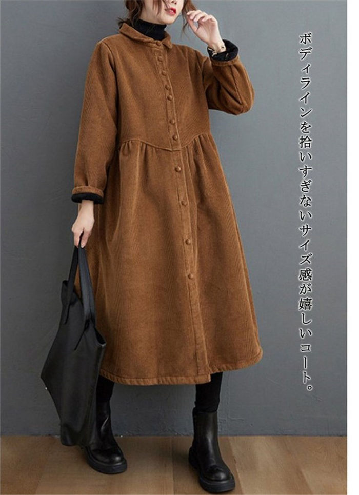 ハイウエスト コーデュロイ ワンピース コーデュロイワンピース 30代 ゆったり aライン レディース 40代 カジュアル ロング丈 冬 ギャザー ワンピース お洒落 着痩せ ワンピース 長袖 丸襟 長袖 50代 きれいめ 大人可愛い 裏起毛 秋冬 上品