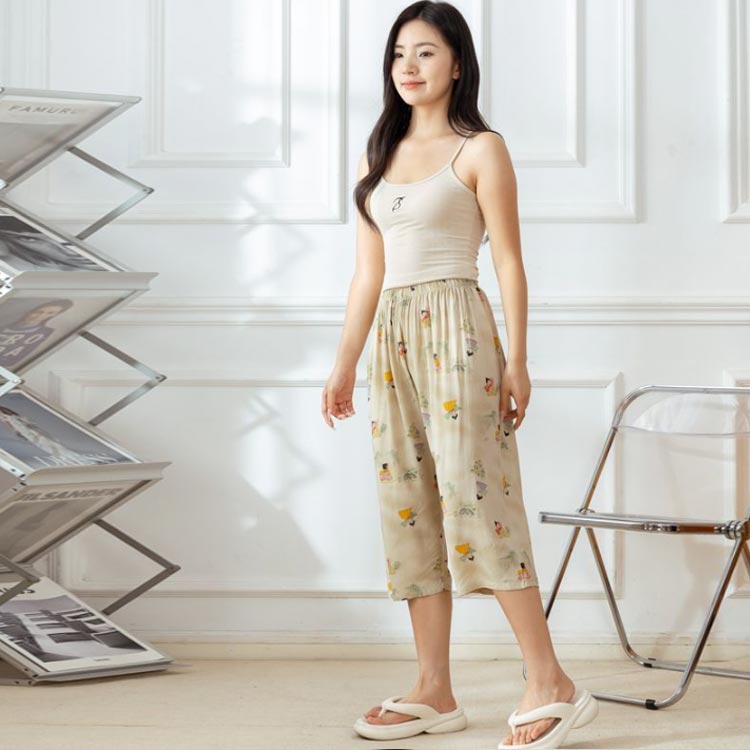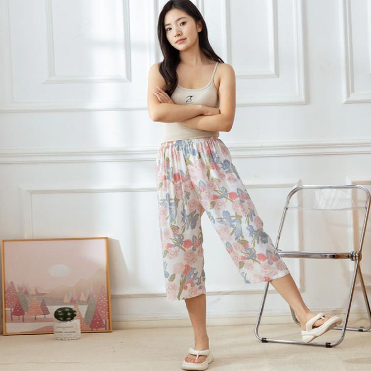 ズボン レディース 7分丈 ワイドパンツ リラックス パンツ パジャマ ステテコ ひんやり リラックスパンツ ゆったり 大きめ やわらかい 薄手 サラサラ 春 春夏 かわいい ホームパンツ 部屋着 送料無料 夏 総ゴム ルームウェア 涼しい ルームパンツ