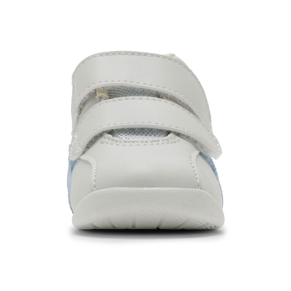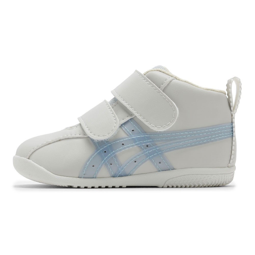 ※商品画像は、ご覧になられているパソコン、ディスプレイ等の設定により、実際の色味とは異なる場合がございます。 ■品 番1144A413.020■カラーグレー×ブルー■ポイントベネッセたまひよの編集部と一緒に、ママが欲しいと思えるシューズを考えました。 歩きはじめの約3カ月間の赤ちゃん向けに展開するシューズ。 つま先を大きく巻き上げる形状でつまずきにくくし、軽く屈曲性に優れたカリフォルニア製法により、スムーズな歩行をサポートします。 さらに靴底全体のエッジを丸くすることで、ぐらつきやすい赤ちゃんの歩行で起こりがちな引っかかりも軽減。 足に触れるインナー材には、吸汗速乾性に優れ、肌に優しい低刺激性の素材「メディエル」を採用しています。 さらにサイズアウトの目安のラインと、お子さまが靴の左右が認識できるイラストを入れました。 フィット感の調節がしやすい2本ベルトで、履き口が大きく開くため脱ぎ履きもしやすいです。 アッパーは軽くやわらかな風合いのマイクロファイバー人工皮革を使用しています。 お子さまのピュアなイメージを表現するためにアシックスストライプにはクリア素材を使用しました。 ■アッパー(表面素材):人工皮革 ■ソール(靴底):ゴム底 ■ワイズ(足囲):2E ■生産国:ベトナム製展開サイズ:11.5cm,12.0cm,12.5cm,13.0cm,13.5cm