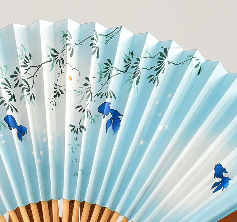 【抗ウィルス機能付き京扇子】「金魚」7寸5分25間サイズ ウラ面(白扇:漆喰塗布加工)漆喰扇子(しっくいせんす) ◆男女兼用 新提案 持ち物扇子 飛沫防止 プレゼントに