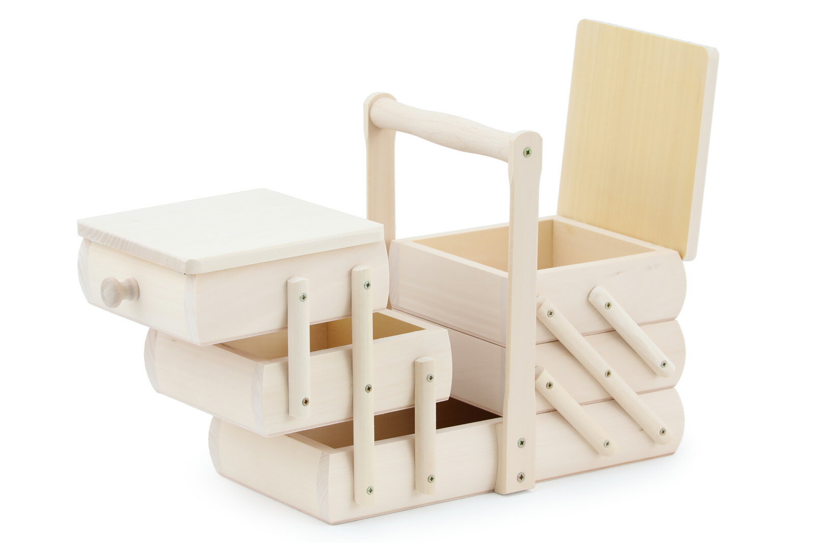 スウェーデン製のナチュラルなソーイングボックスです。北欧は裁縫や編み物が盛んでこのような伝統的なデザインのソーイングボックスはアンティーク市場でも大変人気のある商品です。職人が一つ一つハンドメイドで仕上げたもので使い込んでいくのが楽しみなお品です。薬箱やお道具入れとしてもおすすめです。 商品コード 131x27401 ブランド − サイズ 幅 320 × 奥行 160 × 高さ 235mm(全体) 幅 115 × 奥行 115 × 高さ 43mm(1、2段目内寸) 幅 250 × 奥行 115 × 高さ 43mm(3段目内寸) 素材 リンデン(セイヨウシナノキ) 原産国 スウェーデン パッケージ − お手入れ ほこりが付いた場合は柔らかいブラシ等でお掃除ください。 備考 天然木を使用したハンドメイドのお品ですので1点1点ディテールが異なります。柔らかめの材質なため輸送中にできた擦れや傷、細かな凹みなどがある場合がございます。