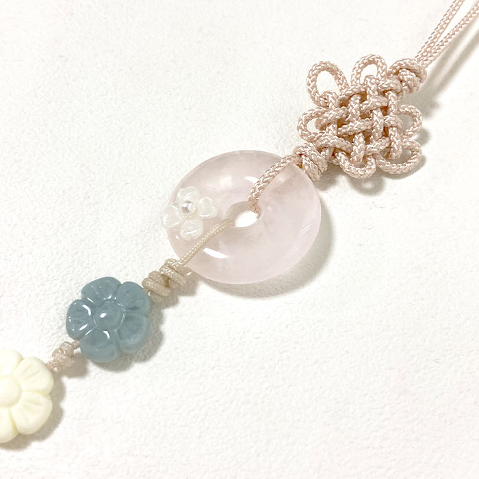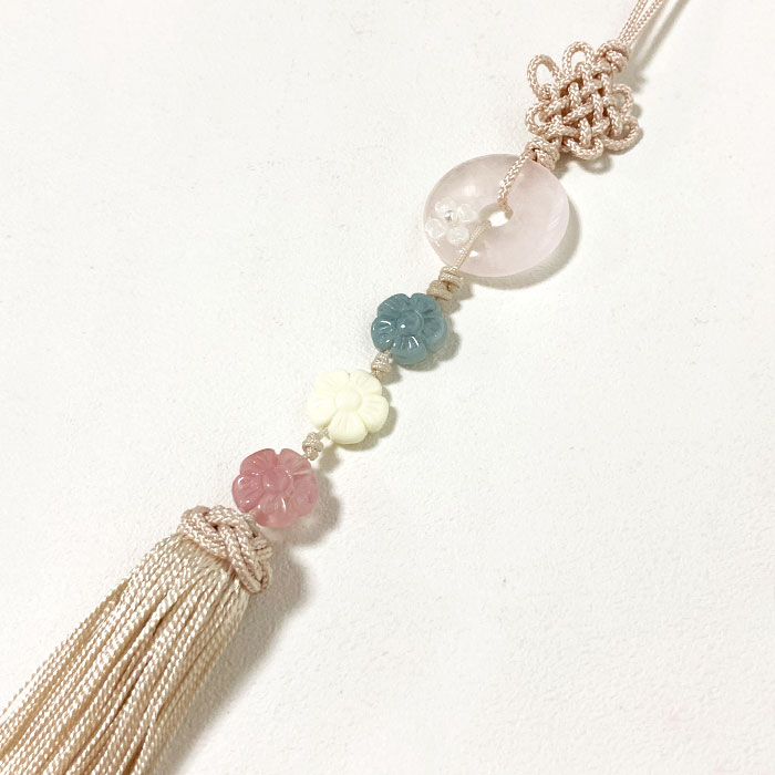 サイズ・素材等寸法 全長(上の紐の部分は含みません):約21cm 飾り部分(ノリゲの飾糸含みません):約縦8cm 横2.5cm素材 樹脂、糸 ※ご確認ください。・ハンドメイドの為制作時により若干サイズなど異なる場合もございます。 ・糸の色も染め釜により多少の差が出る場合もございます。 ・商品写真はブラウザや環境によって実物の色と若干異なって見えることもありえます。ご了承の上ご注文下さい。 ・発送の際に飾り糸の房の部分がよれる場合がございます。その場合は、下記お手入れを参考にして下さい。 【房の飾り・飾り糸のお手入れ方法】 ・スチームを多めに使い、シワやよれを伸ばしてください。シルクも化繊も同様です。 ・普段使わない時は紐をかけて、吊るして保存しておくようにしましょう。モニターの仕様により若干色の見え方が異なる場合がございます。すべて手造り品天然石ですので商品ごとに色等異なります。ならんだお花がかわいいノリゲ 子供用・丸花ミニノリゲ 縦に並んだお花のモチーフがかわいいノリゲ。 サイズも程よく、最近流行の韓服に合わせやすい、上品で優しい色合いも素敵で繊細なノリゲです。 落ち着いた配色で、風呂敷飾りにもおすすめです。 お子様や大人のチマチョゴリにもご利用いただけます。 チマチョゴリの飾りの他にお部屋や車の飾り、バッグチャーム、トルチャンチの飾りにもおすすめです。 *ノリゲとは 昔からチマチョゴリ・韓服に使われる装飾品の代表的な飾りの名称です。 デザインが華やかで、繊細そして素材も多く古くから階級を問わず女性に使われて来ました。 発送の際に飾り糸の房の部分がよれる場合がございます。その場合は、下記お手入れを参考にして下さい。 【房の飾り・飾り糸のお手入れ方法】 スチームを多めに使い、シワやよれを伸ばしてください。 普段使わない時は紐をかけて、吊るして保存しておくようにしましょう。 スタッフ感想チマチョゴリにノリゲがあるのと無いのでは、イメージがかなり変わります。 こちらはデザインの揃ったカチューシャも別ページにてございます。 お子様用の衣装であっても、大人と同じように装うことで豪華さだけではなく、韓国文化に触れることができるのではないでしょうか。 お子様だけではなく、大人のタンウィ衣装など、小ぶりなノリゲをお探しの方におすすめです。 モニターの仕様により若干色の見え方が異なる場合がございます。すべて手造り品天然石ですので商品ごとに色等異なります。