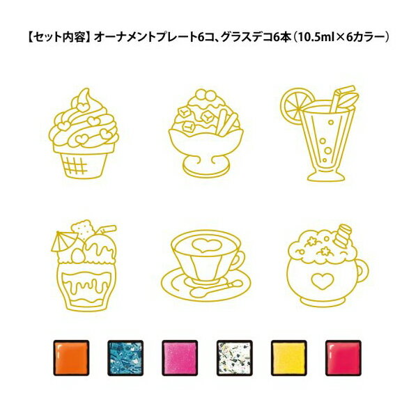 ヤマト グラスデコ オーナメント セット スイーツ 6プレート入 GDS6-W1 飾り 手作り キット ハンドメイド ガラス絵具 ガラス絵の具 プレゼント ステンドグラス プレート クリスマス 誕生日 プレゼント ギフト 工作