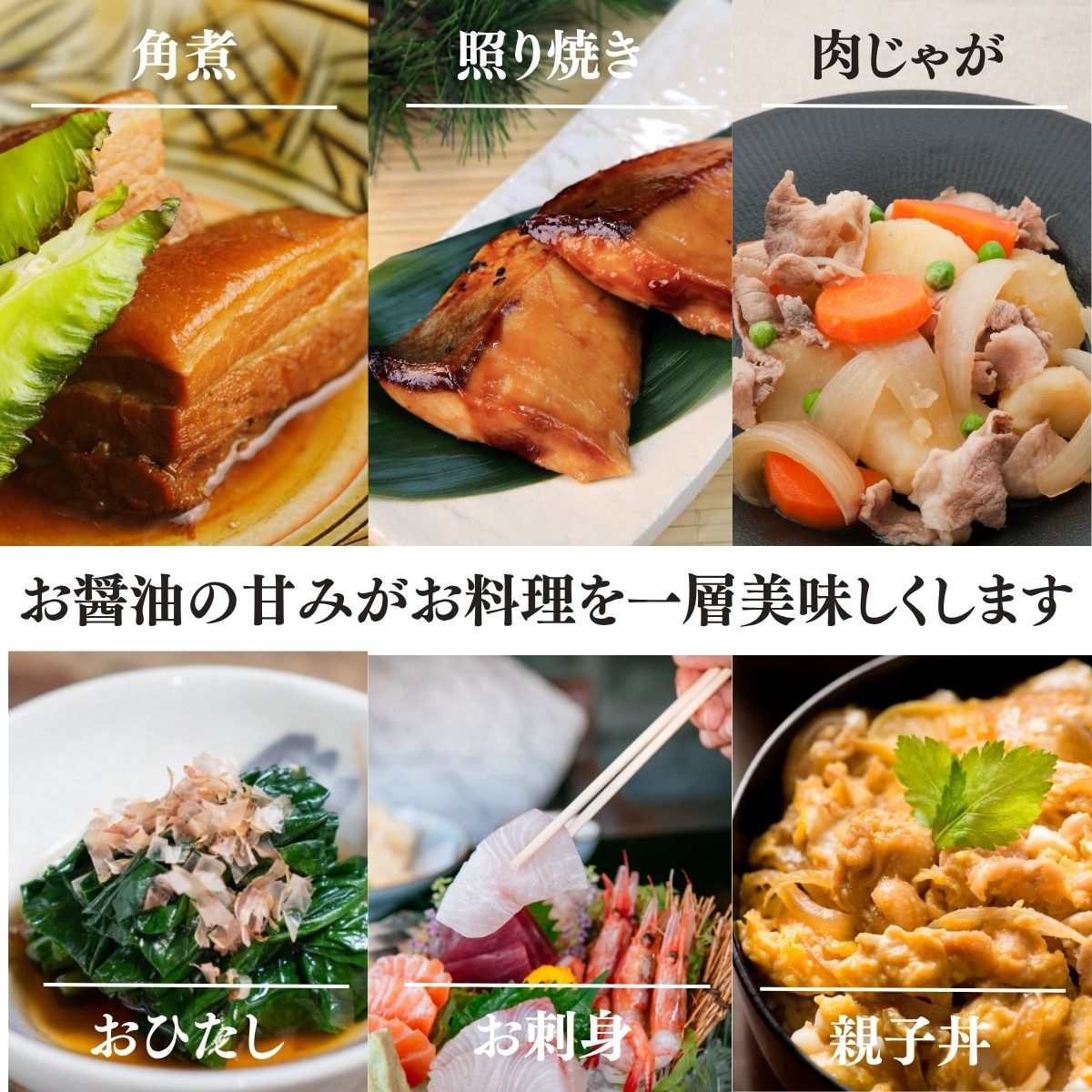 九州で好まれる強い甘味が特徴のJAS規格上級・本醸造の極あまくちしょうゆです。 甘さをいかして卵かけご飯用の醤油や煮物・煮魚などの味付けにお使いください。 原材料 大豆(カナダ)、小麦、食塩、果糖ぶどう糖液糖、ぶどう糖、米/アルコール、甘味料(ステビア、甘草)、保存料(安息香酸Na)、ビタミンB1 栄養成分100mlあたり 熱量89kcal たんぱく質8.5g脂質0g 炭水化物13.8g 食塩相当量15.0g 賞味期限 開栓前18ヶ月(常温)・開栓後2〜3ヶ月(冷蔵庫保管をおすすめします)