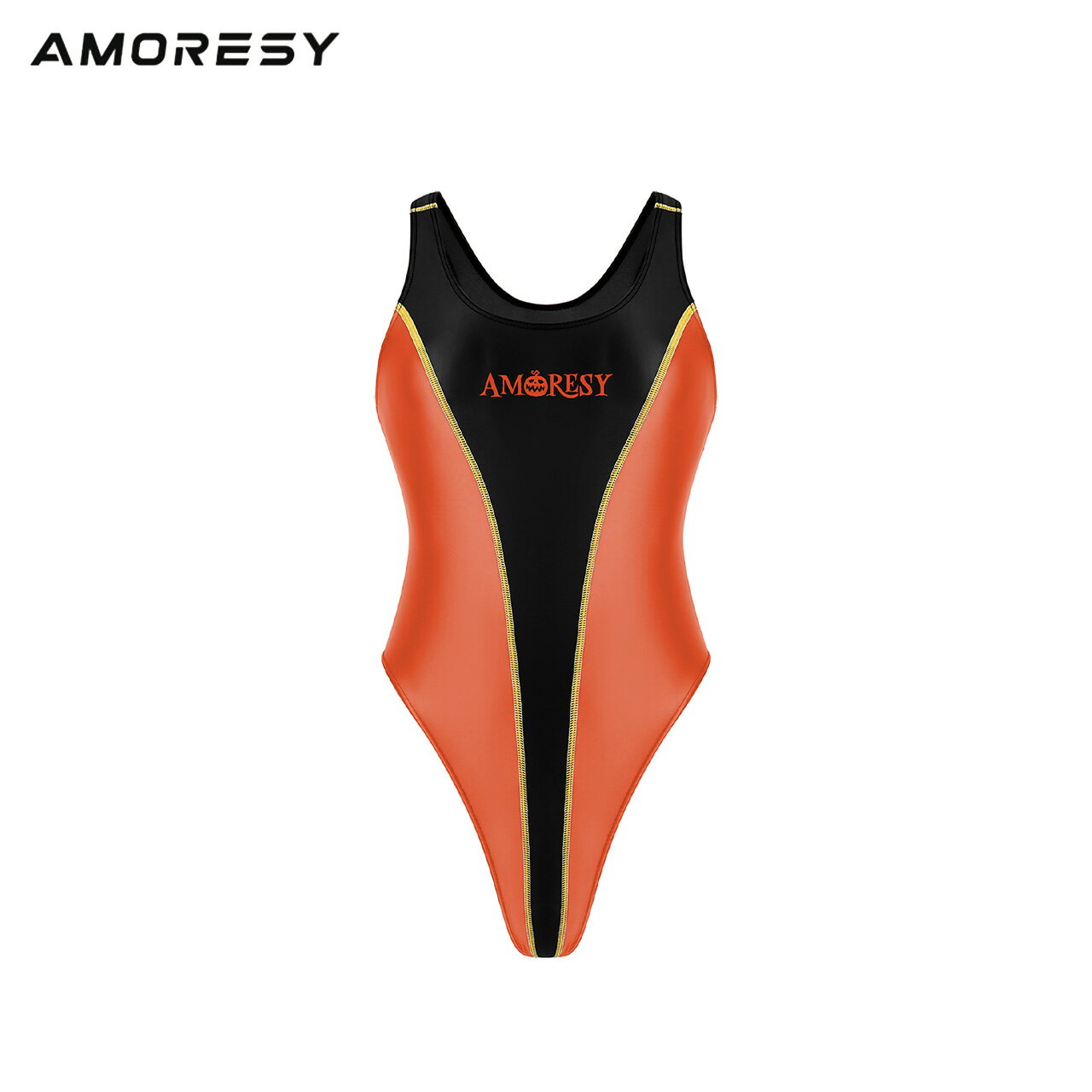 AMORESY アモレシー Novina Spooky ハロウィン レオタード ハイレグ ボディスーツ レーシングバック ストレッチ コスプレ 肌着 プレイスーツ グラビア 男女兼用 送料無料 スカル パンプキン キャッツ ウィッチ