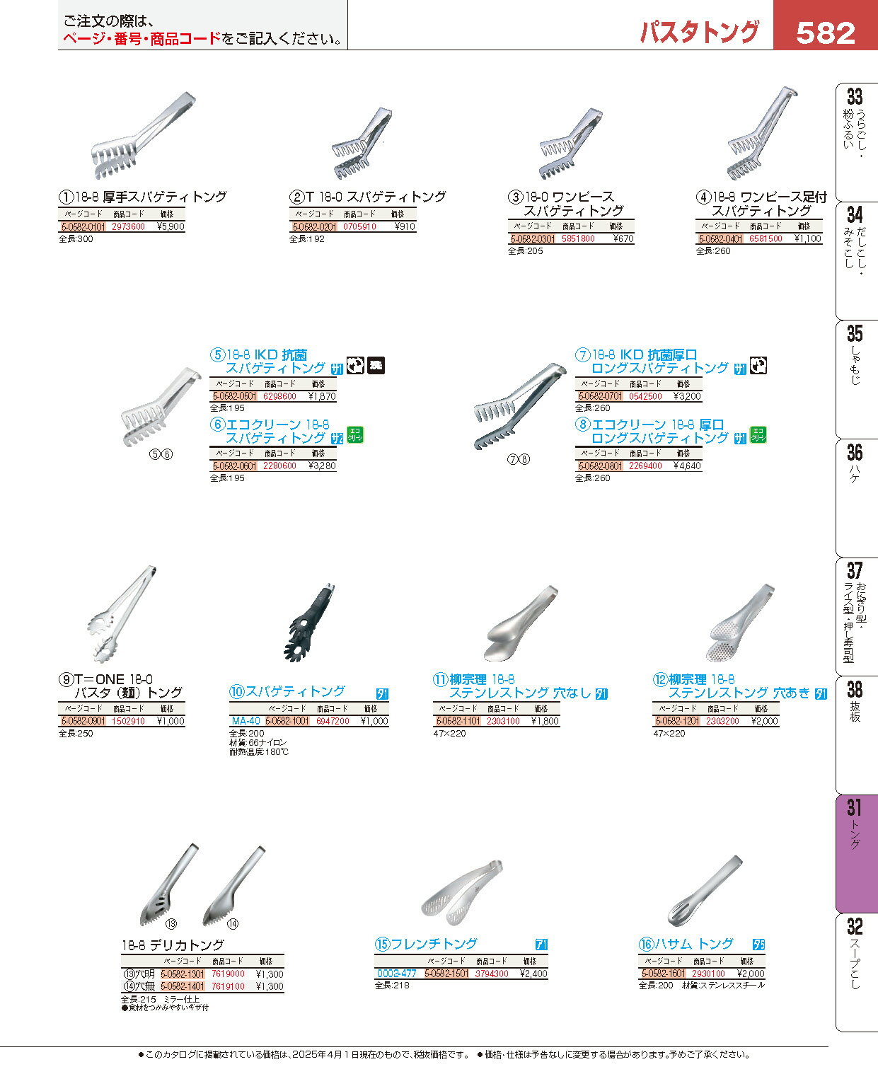 【ポイント17倍】T=ONE 18-0 パスタ(麺)トング 250mm No.2068【日本製】 EBM vol.25[582-9]トング