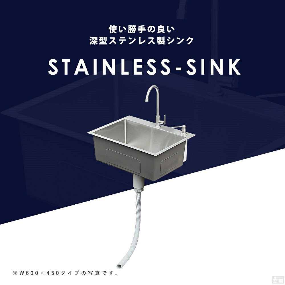 キッチンシンク ステンレス 埋込式 1槽式 600×450 SSB1-6045 日本製排水トラップ採用【60×45】【ステンレス】【蛇口付き】【流し台】【キッチン】【ガーデンシンク】【埋め込み式】【DIY】