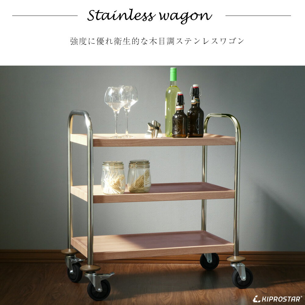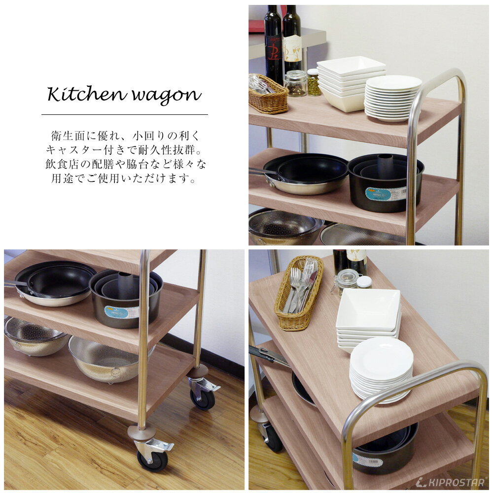 キッチンワゴン 木目調 ナチュラル キャスター付き ステンレス ワゴン【小】3段 組立式 PRO-S3-W-N【業務用ワゴン】【キッチンワゴン】【ステンレスワゴン】【サービスカート】【キャスターワゴン】【おしゃれ】【業務用】【あす楽】