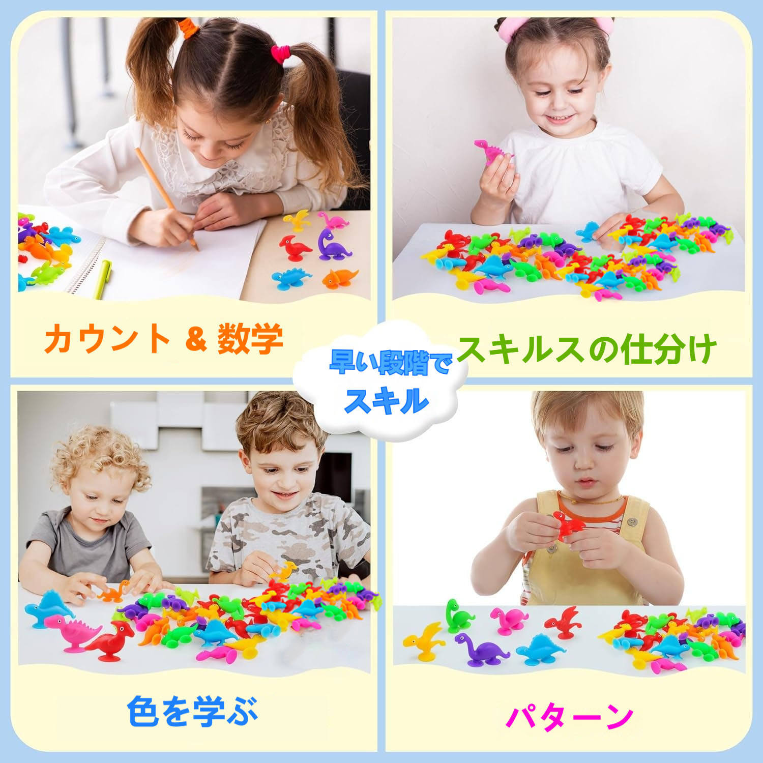 【ぺたぽんとは?】▶▶柔らかく優しいシリコン製♪新感覚!吸盤ブロックの知育玩具です!くっつけたり・はずしたりが楽しい! 【メンテナンスが楽】水拭きができるので、気になる時はいつでも清潔に保てます! ! 安心して遊んでください! 【安全的な素材】シリコン素材+天然由来塗料で安全性が高いです。また、素材が柔らかくて硬い角がないので、ささくれがなくて、柔らかくて快適で、遊んでいる時に手を傷いることを心配しなく、指先に心地よい刺激を与える吸盤のつけるとはがす運動です。 【セット内容】100個の丸い吸盤+16個の恐竜の吸盤:タニストロフェウス*2、トリケラトプス*2、ブラキオサウルス*2、ペテロサウルス*2、スピノサウルス*2、パラグナトゥス*2、ベロキラプトル*2、ステゴサウルス*2。【遊び方】▶▶「ぺた」っと壁にくっつけたり「ぽん」っとはずしたり、吸盤同士をつなげたり様々な楽しみ方ができます。お風呂でも、お部屋でも、お出かけ先でも手軽に楽しく遊ぶことができます!【ぺたぽんによる知育の効果】▶▶凹凸のない壁やテーブル等にくっつけたり、吸盤同士を繋げることで「指先の発達」や「想像力」などを育みます! どんなものを作ろう?どうしたら繋がるかな?こうやってみたらどうなるかな?等、考えて遊ぶことで自然にお子さまの成長に必要なたくさんの力が身に付きます。幼いうちから将来の可能性を広げてあげましょう。