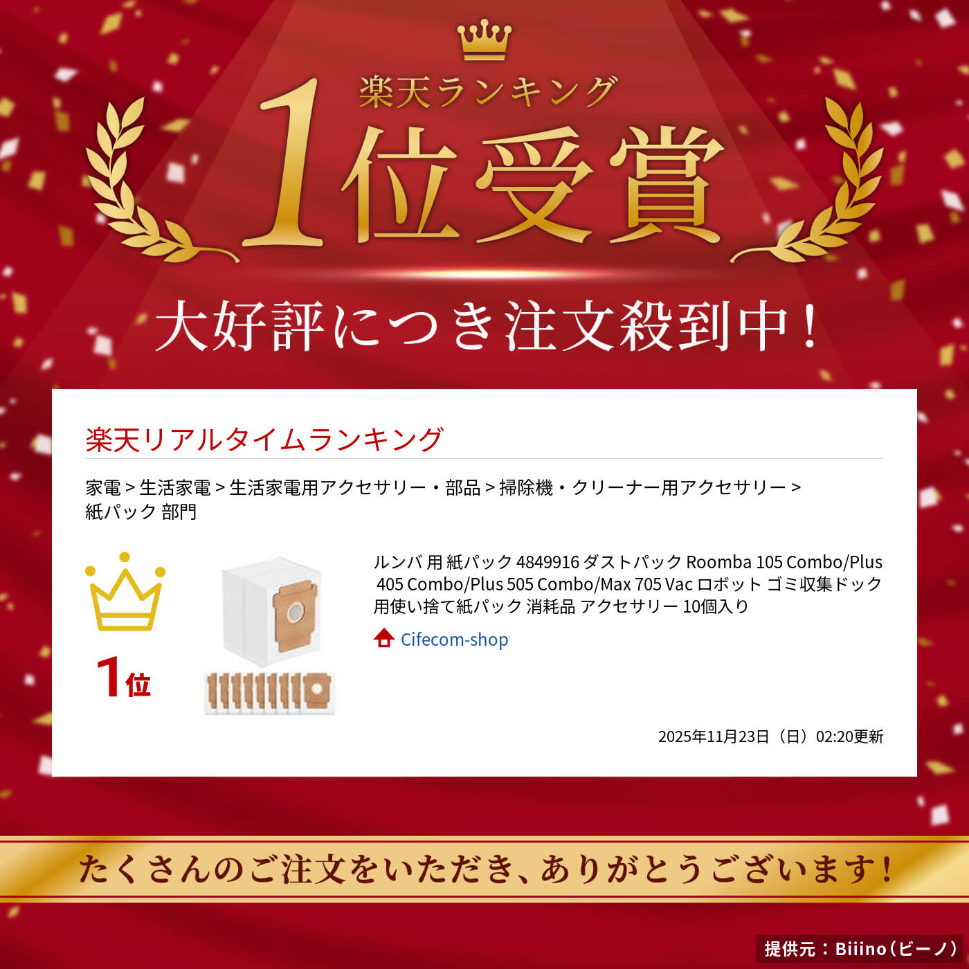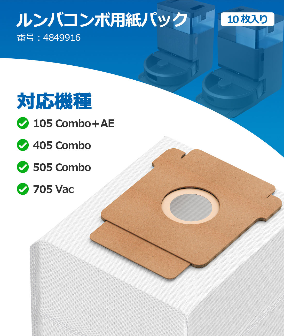 ルンバ 用 紙パック 4849916 ダストパック Roomba 105 Combo/Plus 405 Combo/Plus 505 Combo/Max 705 Vac ロボット ゴミ収集ドック用使い捨て紙パック 消耗品 アクセサリー 10個入り