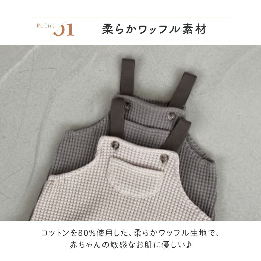 ロンパース サロペット ベビー ワッフル ワッフルロンパース ベビー服 66 70 80 90 赤ちゃん オールインワン つなぎ シンプル 子供服 子ども 女の子 男の子 春 夏 秋 可愛い 綿 子ども服 服 子供 新生児