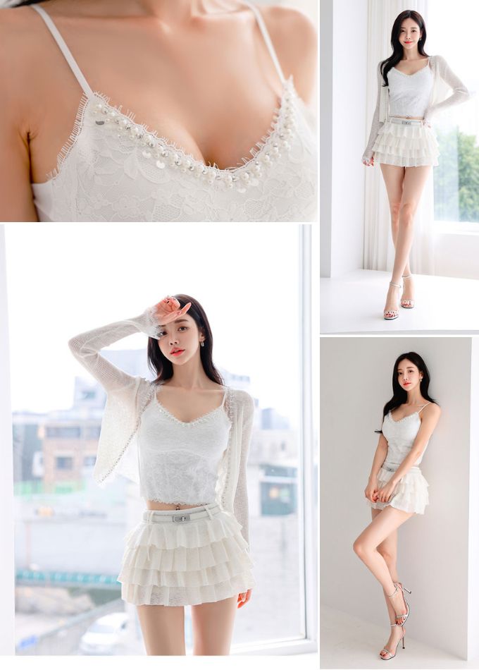 【セット商品】【全2色】レースキャミソール×パールカーディガンセット アイボリー ブラック 【250612set1】( nani )(250613)シナモンガール Cinnamon Girl 超ミニ マイクロミニ 韓国 胸元 セクシー cinnamongirl レディース レース×パールでラグジュアリーコーデ 5