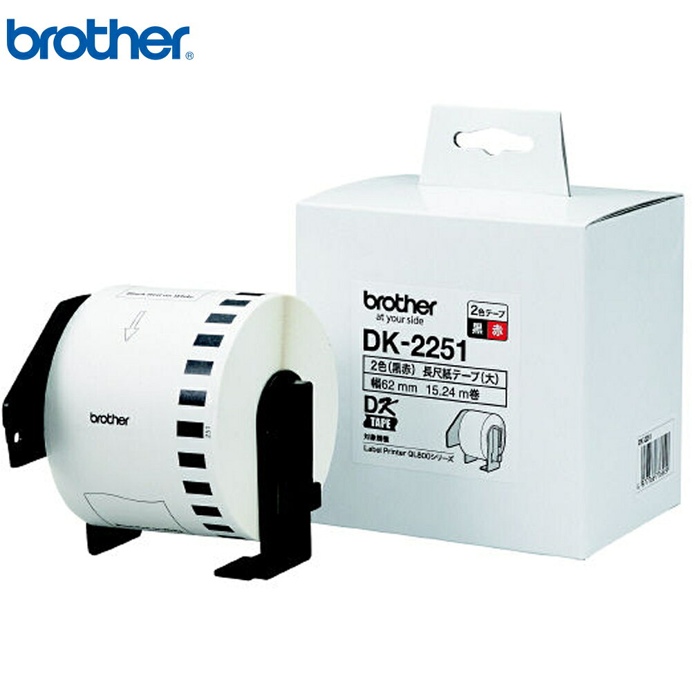 ブラザー 感熱式ラベルテープ 長尺紙テープ 赤黒2色発色 DKテープ DK-2251 ホワイト 幅62mm 15.24m巻 1巻 Brother Thermal Label Tape Long Paper Tape Red And Black Two Color Coloring DK Tape Thermal Paper DK-2251 White width 62mm Length 15.24m 1 roll