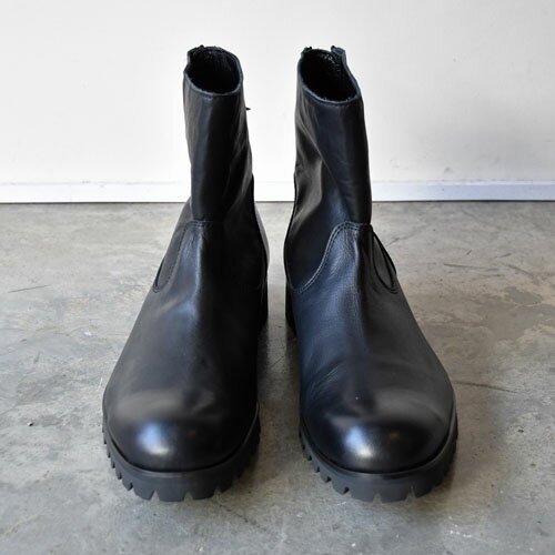 ※当店別注モデル ウォータープルーフレザーを使用したバックジップブーツ。 レザーは、クロム鞣しの牛革を使用し、スコッチガード〓皮革保護剤加工が施された国産防水ソフトレザー。 ソールにはvibram社製#132Kを採用し、高いグリップ力とクッション性を併せ持った重厚な仕立てとなっています。 デザインのアクセントとともに機能性の向上も図られています。 ※ノベルティとして、メンテナンス時に使用できる馬毛ブラシを同梱いたします。 素材 アッパー 牛革 アウトソール 合成ゴム セメンテッド製法 日本製 サイズ 40(25.0〜25.5cm) 41(26.0〜26.5cm) 42(27.0〜27.5cm) ※当店では実店舗・他ショッピングモールでの販売も行っております。 在庫システムの性質上、ご注文後でも品切れ等もございます。 ご注文確認の際、改めてのご案内をさせて頂きます。ウォータープルーフレザーを使用したバックジップブーツ!