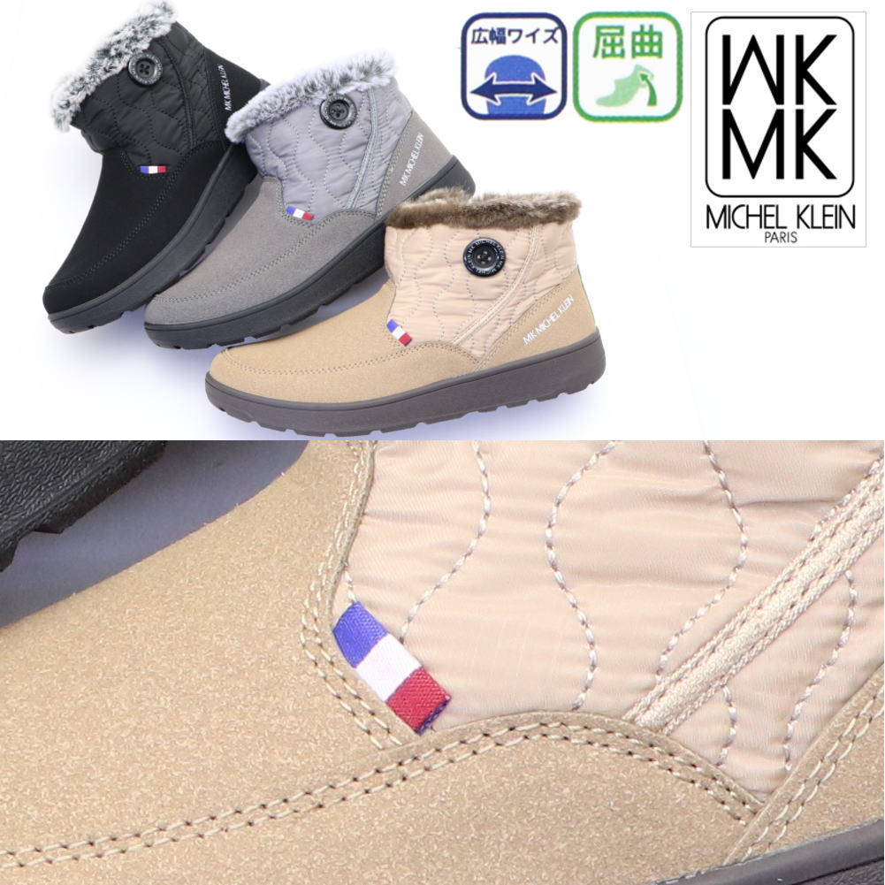 即納 MK MICHEL KLEIN レディース 防水 撥水 幅広 ショートブーツ スエード サイドジッパー ファスナー MKミッシェルクラン No.5039