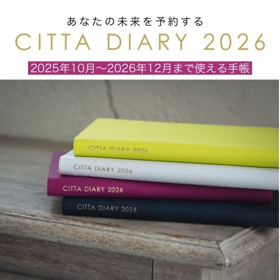 カシスローズ 甘さの中に芯の強さを秘めた、鮮やかで印象的なピンク色。 フェミニンな雰囲気に、モードな洗練が溶け合います。 この手帳が、あなたの感性に自信と輝きを添えてくれるでしょう。 商品詳細情報 A5サイズ 幅15.5センチ×高さ21.5センチ×厚み1.4センチ 重さ:365g B6サイズ 幅13.4センチ×高さ18.8センチ×厚み1.4センチ 重さ:275g レイアウト 年間表:1年見開き(2026年~2028年) プロジェクトページ:2か月見開き(2025年10月~2027年3月) マンスリー:2か月見開き ブロック式(2025年10月~2027年3月) ウィークリー:1週間見開き バーチカルタイプ 月曜始まり 右側に方眼スペース 24時間制 午前4時~24時間(2025年9月29日~2027年1月3日) ※祝日は2025年2月1日現在の物です。なお、祝日法などの改正により、祝日・祝日名・休日あるいは行事が変更になる事があります。 ワクワクリスト 方眼ページ 一粒万倍日、天赦日、満月、新月、国民の祝日記載 六曜付き(プロジェクトページ、マンスリーページのみ) 手帳の使い方説明書(冊子)付き 製本タイプ 180度フルに開く糸綴じ製本 万年筆でも裏抜けしない上質な紙 しおり3本付き(紺、グレー、エンジ) 改訂について CITTA DIARY 2026 (10月始まり)より、以下の箇所を改訂しました。 1.日本語版と英語版を統合しました。 ・ご挨拶文や使い方、付属の説明書は日本語表記のみ ・マンスリー・ウィークリーは日本語・英語併記 ・3年カレンダー・プロジェクトページの曜日は日本語表記 ・祝日・六曜は日本語表記 2.フォントを全体的に変更しました。 販売価格 CITTA DIARY 2026 A5サイズ:4,070円(税込) CITTA DIARY 2026 B6サイズ:3,520円(税込) 配送について 商品代金のご入金確認後、日本郵便にて順次発送 ■国内配送料は全国一律550円(税込)、ご購入の商品合計金額円以上3,980円で無料です。 ■ゆうパケット 商品2点までのご注文はゆうパケットにて配送いたします。 ※「ゆうパケット」はご自宅のポストへのお届けと なり、配送日時のご指定はできかねます。 ■ゆうパック 3点以上ご注文いただきました商品はゆうパックにて配送いたします。 ・ご注文商品によって弊社で配送方法を選ばせていただきます。 ・土・日・祝日は発送業務休業のため、翌営業日より順次発送いたします。 ・商品を出荷してからお手元に届くまでのお時間は地域により異なります。 お願い ■転売防止のため、お一人様5冊までとさせていただきます。 ■他商品と合わせて6冊以上ご購入のお客様には確認のためご連絡をさせていただくことがございます。 ■注文確定後の商品の変更はいたしかねます。 ■こちらは贈答用に包装ができません。あらかじめご了承くださいませ。 注意点 ■お使いのモニターの発色具合によって実際のものと色が異なる場合がございます。 ■こちらの表紙カバーはPVCで制作しております。 そのため製造過程で黒点のようなものが混ざる場合がございます。