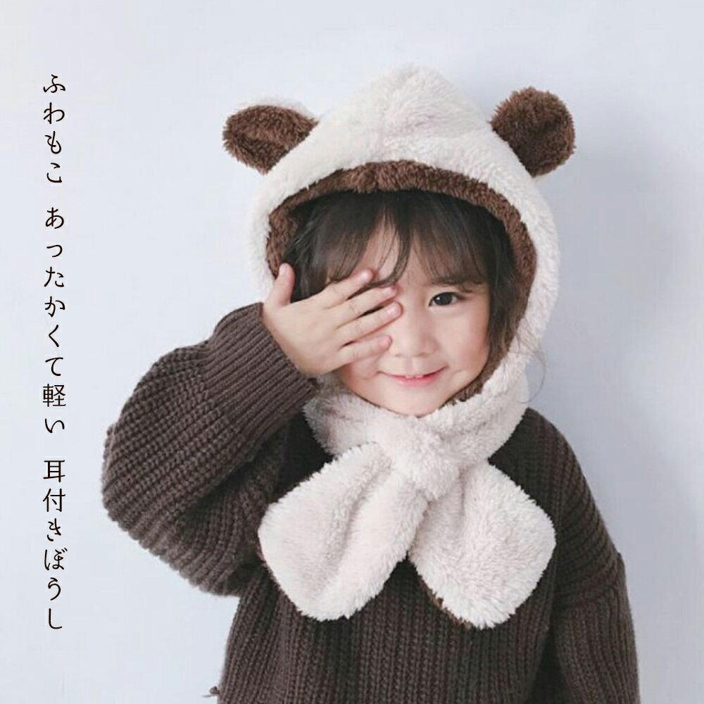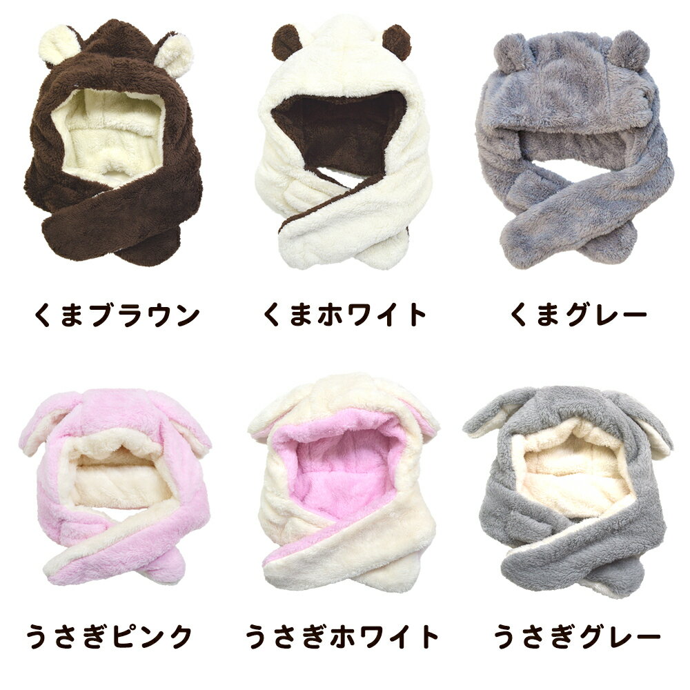 ベビー キッズ マフラー 帽子 マフラー付き帽子 うさぎ くま クリスマス プレゼント 防寒 被り物 耳付き帽子 女の子 男の子 赤ちゃん うさ耳 もこもこ ふわふわ ネックウォーマー 子ども 子供用 ブラウン ホワイト クマ ウサギ アニマル 秋 冬 雪遊び バラクラバ