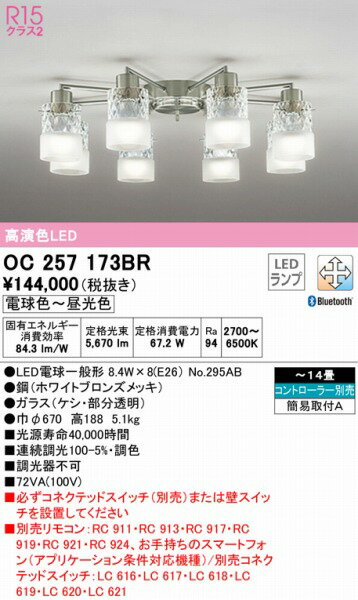 オーデリック シャンデリア 〜14畳 8灯 LED 調色 調光 Bluetooth OC257173BR