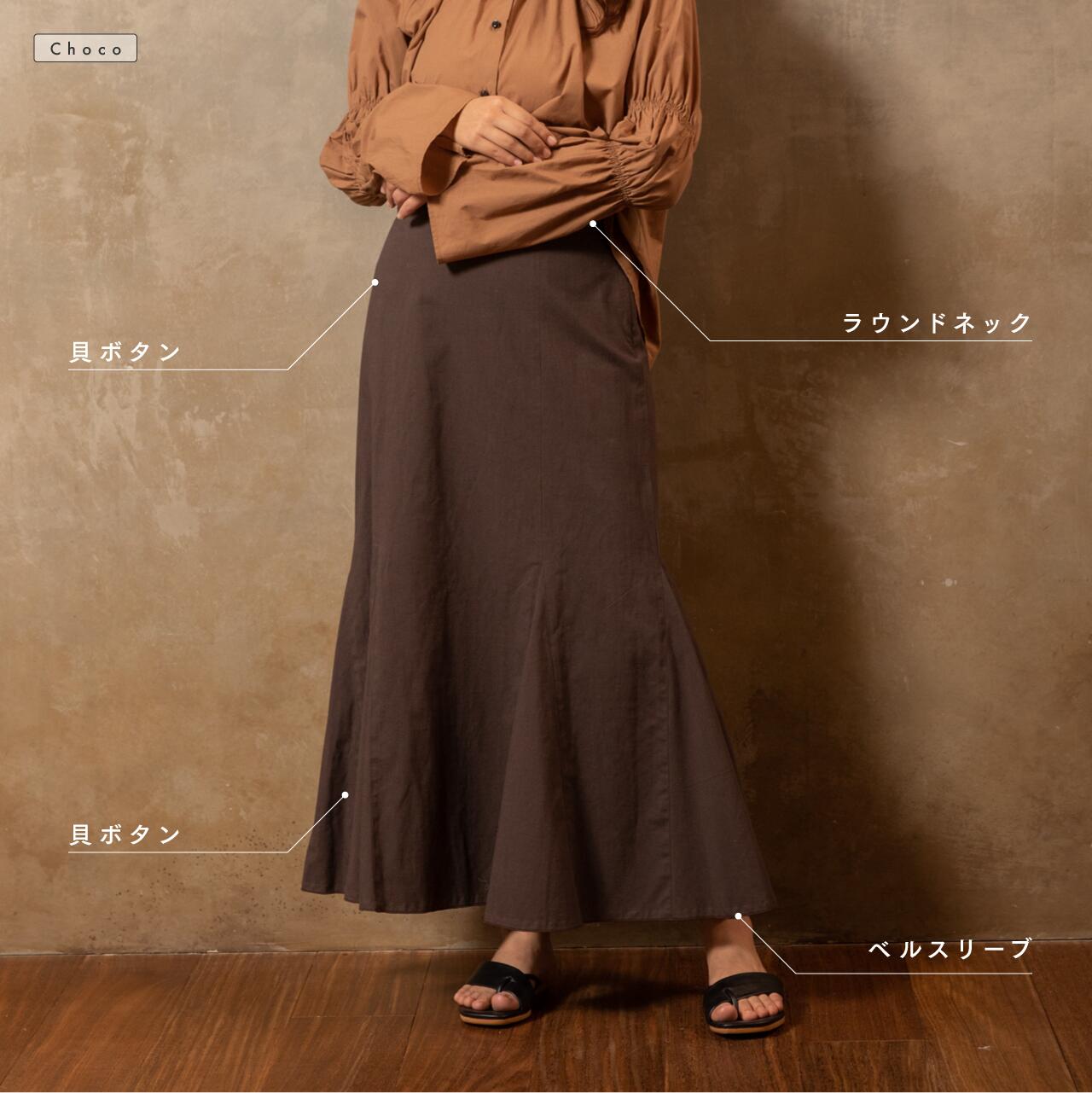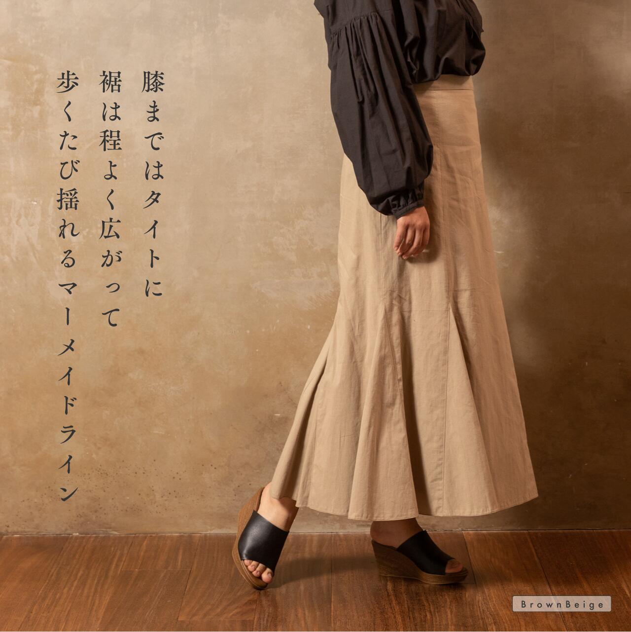 アンクル丈マーメイドスカート 洗練された女性らしさを叶えてくれる 人気のマーメイドスカートです。 膝あたりまでは程良くタイトに仕上げながら 歩くたびに裾が広がる綺麗なシルエットです。 後ろのベルト部分はゴムを用い 裏地にガーゼを使用しており ストレスフリーで肌触りの良いアイテムです。 ◇素材(表地):綿85% 麻 15%(和晒) ◇素材(裏地):綿100%(和晒):ガーゼ ◇サイズ: M / L ※モデル:身長161cm ◇サイズ詳細 【M】 着丈:86cm ウエストゴム上がり:70cm ヒップ:70cm 【L】 着丈:89cm ウエストゴム上がり:73cm ヒップ:74cm ◇カラー:ブラウンベージュ / チョコ ◇日本製 ■お取り扱いについて■ ・和晒は、織りあがった生地の不純物を落とす工程に関して時間をかけ、繊維にストレスをかけておらず、また通常は焼いてしまう生地表面の毛羽(ケバ)をそのまま残しているため、毛玉ができたり、縮んだりすることがあります。色合いや風合いを保つため、タンブラー乾燥を避けて、手洗いの後に形を整えて陰干ししてください。 ・濃い色のものは色移りをすることがありますので、ご注意ください。 ・綿や麻を使用している為、縮む可能性もございます。普段の洗濯は手洗いを推奨いたします。干す際にきちんとシワを伸ばしていただくことをお勧めします。 ・仕様・素材感が予告なく変更になる場合があります。 ・デバイスやモニター環境により色目が若干異なる場合がございます。アンクル丈マーメイドスカート 洗練された女性らしさを叶えてくれる 人気のマーメイドスカートです。 膝あたりまでは程良くタイトに仕上げながら 歩くたびに裾が広がる綺麗なシルエットです。 後ろのベルト部分はゴムを用い 裏地にガーゼを使用しており ストレスフリーで肌触りの良いアイテムです。 ◇素材(表地):綿85% 麻 15%(和晒) ◇素材(裏地):綿100%(和晒):ガーゼ ◇サイズ: M / L ※モデル:身長161cm ◇サイズ詳細 【M】 着丈:86cm ウエストゴム上がり:70cm ヒップ:70cm 【L】 着丈:89cm ウエストゴム上がり:73cm ヒップ:74cm ◇カラー:ブラウンベージュ / チョコ ◇日本製 ■お取り扱いについて■ ・和晒は、織りあがった生地の不純物を落とす工程に関して時間をかけ、繊維にストレスをかけておらず、また通常は焼いてしまう生地表面の毛羽(ケバ)をそのまま残しているため、毛玉ができたり、縮んだりすることがあります。色合いや風合いを保つため、タンブラー乾燥を避けて、手洗いの後に形を整えて陰干ししてください。 ・濃い色のものは色移りをすることがありますので、ご注意ください。 ・綿や麻を使用している為、縮む可能性もございます。普段の洗濯は手洗いを推奨いたします。干す際にきちんとシワを伸ばしていただくことをお勧めします。 ・仕様・素材感が予告なく変更になる場合があります。 ・デバイスやモニター環境により色目が若干異なる場合がございます。