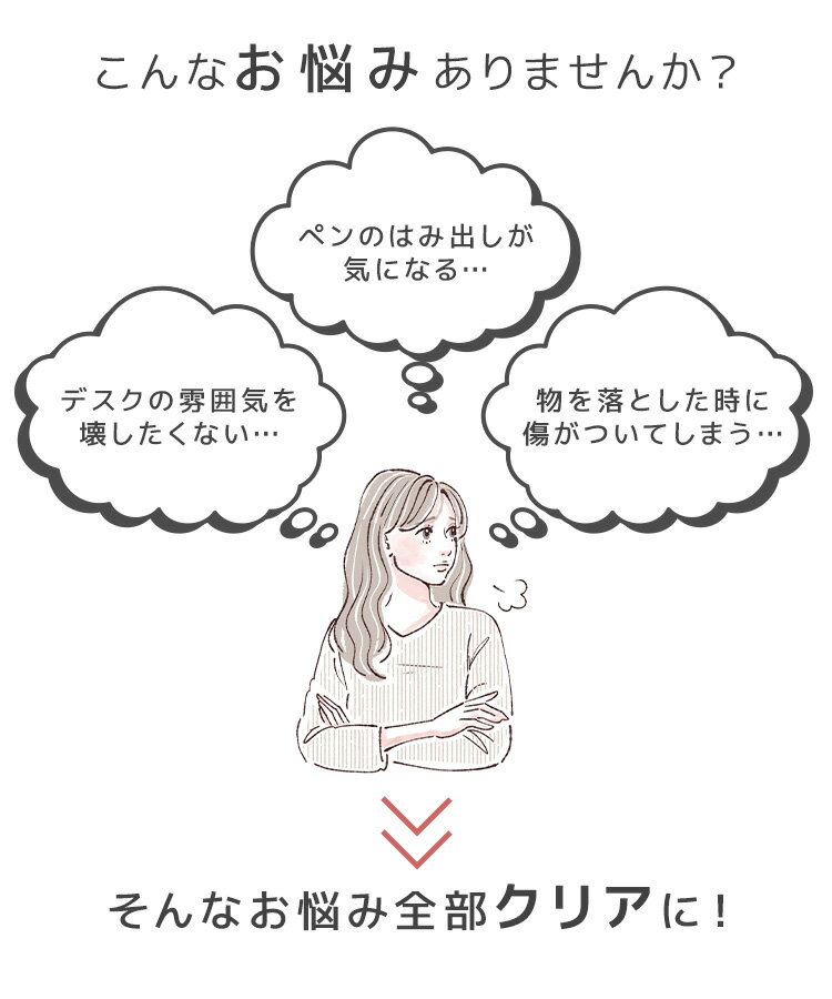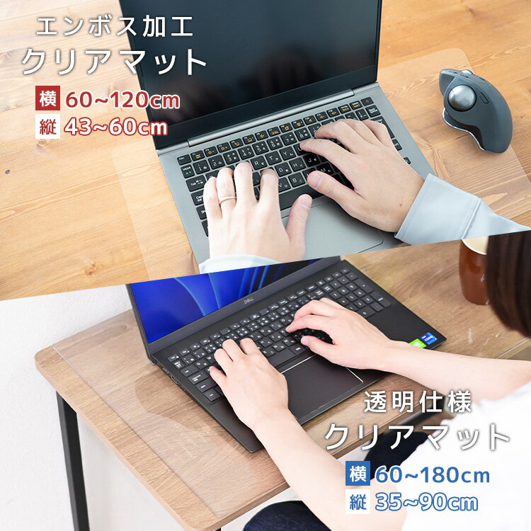 【おかげさまで累計15万枚突破】 デスクの傷つきや汚れ、ペンのはみだしが気になる…。 でも、マットを敷いて、デスクの雰囲気を崩したくない…。 そんなお悩みには、大切なデスクを汚れやキズから守る、クリアデスクマットがオススメです。 NEW【透明仕様クリアマット】が仲間入り! デスク本来の色味や質感を損なわない透明度の高い素材を採用! 両面に非転写加工を施しているため、印刷物や写真が貼り付かず、色移りの心配もありません。 カレンダーや予定表、メモなど挟むこともでき、作業も快適です。 おすすめポイント! ■汚れ・水シミから床を守る 撥水性のあるPVC素材を使用してるので、汚れやシミに強く、 食べ物や飲み物をこぼしてもサッと拭くだけ!お手入れも簡単です。 抗菌・防カビ加工で、よりクリーンに。 ■傷や衝撃をガード 透明だから、インテリアの邪魔をしない! 敷くだけで、雰囲気を崩すことなく、 落下物による凹みや引きずりによるダメージを防ぎます。 ■サラサラの感触でベタつかない エンボス加工を施しているので、光の反射を抑え、べたつきを感じさせないサラサラの手触りです。 ■光学式マウスに対応 光学式マウスにも対応しているので、マウスパッドを使用せずにマウス操作ができます。 マウスパッドがいらないので、デスク周りもスッキリ! ■ピタッとズレない快適設計 裏面がフラットになっているので、ピタッと密着してズレを防止。 角丸設計でめくれにくく、カレンダーや予定表、メモなど挟むこともできます。 ■床暖房対応の耐熱仕様 -30℃~100℃の耐冷・耐熱加工を施しているので、床暖房の上での使用もできます。 ■カット自由自在! お好みのサイズにカットできるので、自由自在にアレンジできます。 ダイニングテーブルやキッチンフロアマットに、 洗面所や玄関、学習机 デスクマット、子供の遊び場やペットのエリアなど、様々なシーンで活躍します。 商 品 詳 細 特徴 防水・撥水 耐冷・耐熱(床暖房対応) 抗菌・防カビ エンボス加工 めくれにくい角丸加工 滑り止め付き カット自由 カラー 透明|クリア サイズ 【エンボス加工クリアマット】 (約)60×43cm (約)80×60cm (約)90×60cm (約)120×60cm 厚さ:約1.5mm 【透明仕様クリアマット】 (約)60×35cm (約)80×40cm (約)80×60cm (約)90×43cm (約)90×60cm (約)120×60cm (約)120×80cm (約)140×80cm (約)150×90cm (約)180×80cm 厚さ:約2mm ※伸縮性のある素材のため、サイズに多少の誤差が生じる場合がございます。 素材 軟質PVC 使用温度 約−30℃〜100℃ 保証期間 30日間 ※商品到着後30日以内の初期不良・破損のみご対応させていただきます。 注意事項 ・熱い湯飲みやコーヒーカップなどを、直接マット上に置かないでください。跡が残ったり反り返ったりして変形することがあります。 ・ゴム製品やゴム脚が付いた物を置くと、跡がつく場合があります。 ・直射日光、温度、湿度によっては、製品の変色、伸縮、反り返りが発生することがあります。 ・筒状に丸めて巻いた状態でのお届けとなります。室温20〜25℃で広げていただきますと、巻きグセは1日ほどでとることができます。なかなか巻きグセがとれない場合には、逆方向に巻いていただくと巻きグセがとれやすくなります。 ・お手入れは薄めた中性洗剤を湿らした布につけ、固く絞って拭いた後、水分が残らないように乾いた布で乾拭きしてください。 ・日の当たる所で使用しないでください。日焼けで硬化する場合があります。 ・商品は、モニターによって色合いが異なって見える場合があります。 ・仕様・デザインは改良のため予告なく変更することがあります。 配送について 送料 無料 ※北海道・沖縄・離島等、一部地域は別途中途料がかかります。 備考 ・写真の色調はモニターの機種や設定により実際の商品と異なる場合がございます。 ・配達地域や交通事情等により、希望配達日時にお届けできない場合がございます。あらかじめご了承ください。 ▼検索キーワード ダイニングマット 撥水 クリア ダイニング マット 透明 防水 床暖房 透明 PVCキッチンマット 大判 ソフトタイプ 保護シート キズ防止 傷防止 汚れ防止 クリアキッチンマット クリアマット 透明マット キッチンクリアマット 台所 キッチン フローリング 傷防止 デスクマット 学習机 リビングマット 透明マット フロアマット フロアシート カット 学習デスク チェア 机 廊下 デスクシート 一人暮らし 新生活 引越し 引っ越し キッチンマット 透明 PVCキッチンマット 大判 ソフトタイプ 保護シート キズ防止 傷防止 汚れ防止 クリアキッチンマット クリアマット 透明マット キッチンクリアマット 台所 キッチン 台所用品 キッチン用品 フローリング 傷防止 デスクマット 学習机 床 キッチンマット 透明 リビングマット 透明マット フロアマット フロアシート カット 学習デスク チェア 机 キッチン用品 廊下 デスクシート 一人暮らし 新生活 引越し 引っ越し 来客 来客用 春 夏 秋 冬用 大人 女性 男性 メンズ ウィメンズ レディ