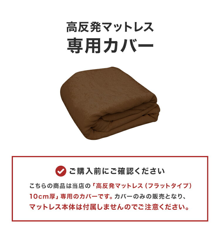 【厚さ10cmの高反発マットレス対応】 手触りの良いフワフワ柔らかなパイル生地のマットレスカバーです。 肌触り抜群でぐっすり眠れます♪ 取り外しやすいL字ファスナー採用! 洗濯機で丸洗いできるので、いつでも清潔♪ エコテックス認証済みなので、小さなお子様やお肌が敏感な方も安心してお使いいただけます。 商 品 詳 細 対応マットレス 高反発マットレス(フラットタイプ)10cm厚 内容 カバー × 1 ※マットレス本体は付属しておりません。 カラー ベージュブラウン サイズ 【シングル】約幅97×長さ195×厚さ10cm 【セミダブル】約幅120×長さ195×厚さ10cm 【ダブル】約幅140×長さ195×厚さ10cm 素材 ポリエステル100%(パイル生地) 保証期間 30日間 ※商品到着後30日以内の初期不良・破損のみご対応させていただきます。 注意事項 ・カバーのみの販売となります。マットレス本体は付属しておりません。 ・商品は、モニターによって色合いが異なって見える場合があります。 ・仕様・デザインは改良のため予告なく変更することがあります。 配送について 送料 無料 ※北海道・沖縄・離島等、一部地域は別途中途料がかかります。 備考 ・配達地域や交通事情等により、希望配達日時にお届けできない場合がございます。あらかじめご了承ください。 ▼検索キーワード マットレス カバー シーツ シングル セミダブル ダブル 高反発 高反発マットレス 10cm パイル ふわふわ フワフワ 高反発マット マット ベットマット ベッド 敷き布団 敷きパッド 洗える カバー エコテックス認証 寝具 あたたかい 暖かい 防寒 敬老の日 母の日 父の日 ギフト 誕生日 プレゼント 父の日ギフト 誕生日プレゼント 結婚祝い 福袋 メンズ レディース 男性 女性 あす楽 人気 おすすめ 送料無料 安い 激安 セール 通販 楽天 クラソート Classort WEIMALL Classort楽天市場店▼ 本商品対応マットレスはコチラ ▼ 高反発マットレスフラットタイプ厚さ10cm \こちらもオススメ/高反発マットレス 極厚20cmでベッドフレーム要らず!▼ 高密度30D|かため(240N) ▼ ■三つ折りタイプ■S|SD|D厚さ20cm ワンランク上の寝心地!▼ 高密度30D|かため(210N) ▼ ■三つ折りタイプ■S|SD|D厚さ10cm ■1枚タイプ■S|SD|D厚さ10cm ▼ かため(175〜190N) ▼ ■三つ折りタイプ■SS|S|SD|D厚さ10cm \こちらもオススメ/低反発マットレス ▼ 1枚敷きでも底付き感なし! ▼ S|SD|D厚さ8cm ▼ 取り扱いやすい薄型! ▼ S|SD|D厚さ4cm \まだまだあります/ ▼一緒にご購入している関連品▼ >届いてすぐ使える!布団7〜9点セット >敷きパッド・ボックスシーツ・枕カバー >掛け布団 >毛布・ブランケット >まくら >UV除菌できる!布団クリーナー
