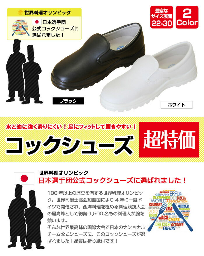 JCM ジェーシーエム 激安 コックシューズ【コックシューズ 黒 白 キッチン ホール 厨房 厨房靴 抗菌 防臭 撥水 業務用】 cs-001 宅配のみ