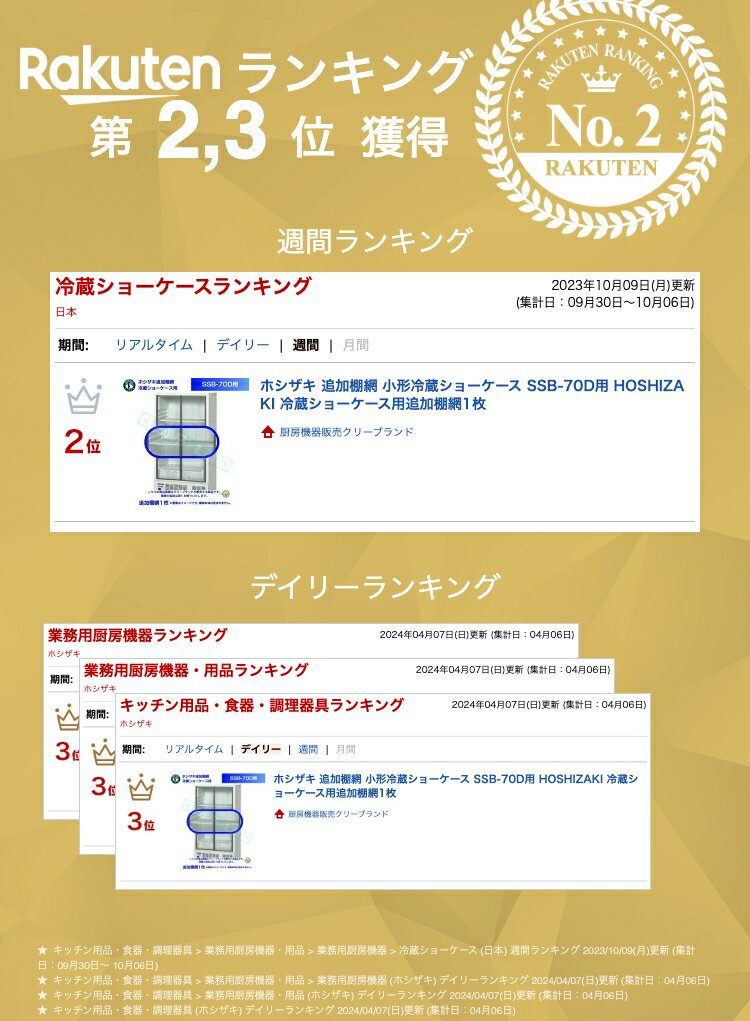 ホシザキ 追加棚網 小形冷蔵ショーケース SSB-70D用 HOSHIZAKI 冷蔵ショーケース用追加棚網1枚