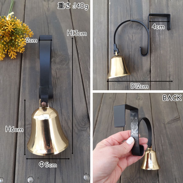アンティークな雰囲気たっぷりのスイングベル チリンチリーンと優しい音色に心が癒されます サイズ W2cm×H13cm×D12cm ベル:Φ5cm×H6cm 扉引っ掛け部分:4.5cm 重さ:140g 材質 ベル:真鍮 本体:アイアン 色 ブラック 商品説明 アンティークで雰囲気たっぷりな真鍮のスイングベル チリンチリーンと優しい音色が出迎えてくれます シンプルな形がどんなインテリアにも合いそう 取り付けは簡単で、ただドアに引っ掛けるだけです おしゃれのためにつけるだけでなく、お客様を知らせたり防犯対策にもなりそう 玄関でチリンチリーンと心地良い音色で心癒されて下さい ご注意 ※引き戸では音が鳴らない為、開き戸でのご使用をお願い致します ※モニターによって、画像商品と実物商品との色目が違うことがあります ※商品によって加工の程度は異なりますが、商品の特徴としてご理解頂きその風合いをお楽しみ下さい ※写真はサンプルのもので、お届けする商品とは形や色のつき方が異なる場合がございますので予めご了承下さい 関連商品 ネジタイプはこちら→CLICK!! マグネットタイプはこちら→CLICK!!