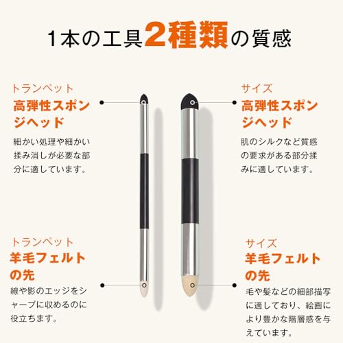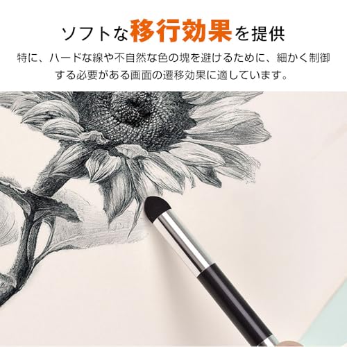 商品情報商品の説明擦筆主な仕様 デッサンに最適な基本ツール9点セット:大小異なる6本の紙製ぼかしペンに加え、異なるサイズのスポンジ擦筆2本、12層のサンドペーパー付き紙やすり1本を同梱。ビギナーからプロのアーティストまで幅広く使える実用的なセットです。 丈夫で扱いやすい紙製ブレンダー:丁寧に圧縮された上質な紙を使用しており、しっかりとした作りで長持ちします。先端がすり減ってきたら、紙層を少しずつ剥がすことで新しい面をすぐに使え、経済的でエコな設計です。 快適な描き心地のスポンジブレンダー:スポンジとフェルトの先端を備えた2種類のぼかしブラシは、柔らかくなめらかなタッチで色を自然にぼかします。グリップ感の良いABS製ボディは手にしっかりフィットし、水洗い可能で繰り返し使えるためコストパフォーマンスにも優れています。 使い勝手の良いペーパーシャープナー:12層構造の砂紙部分は、鉛筆の先端調整や擦筆のメンテナンスにぴったり。汚れた部分も軽くこするだけで簡単に掃除でき、いつでも清潔な状態で使用できます。 幅広い表現をサポート:本ツールは、スケッチや木炭画、パステルアート、色鉛筆イラストなど多様な画材に対応可能。指の代わりに使用することで、微細な陰影ややわらかいラインの表現がより簡単に。プロらしい繊細で奥行きある描写を目指す方におすすめです。
